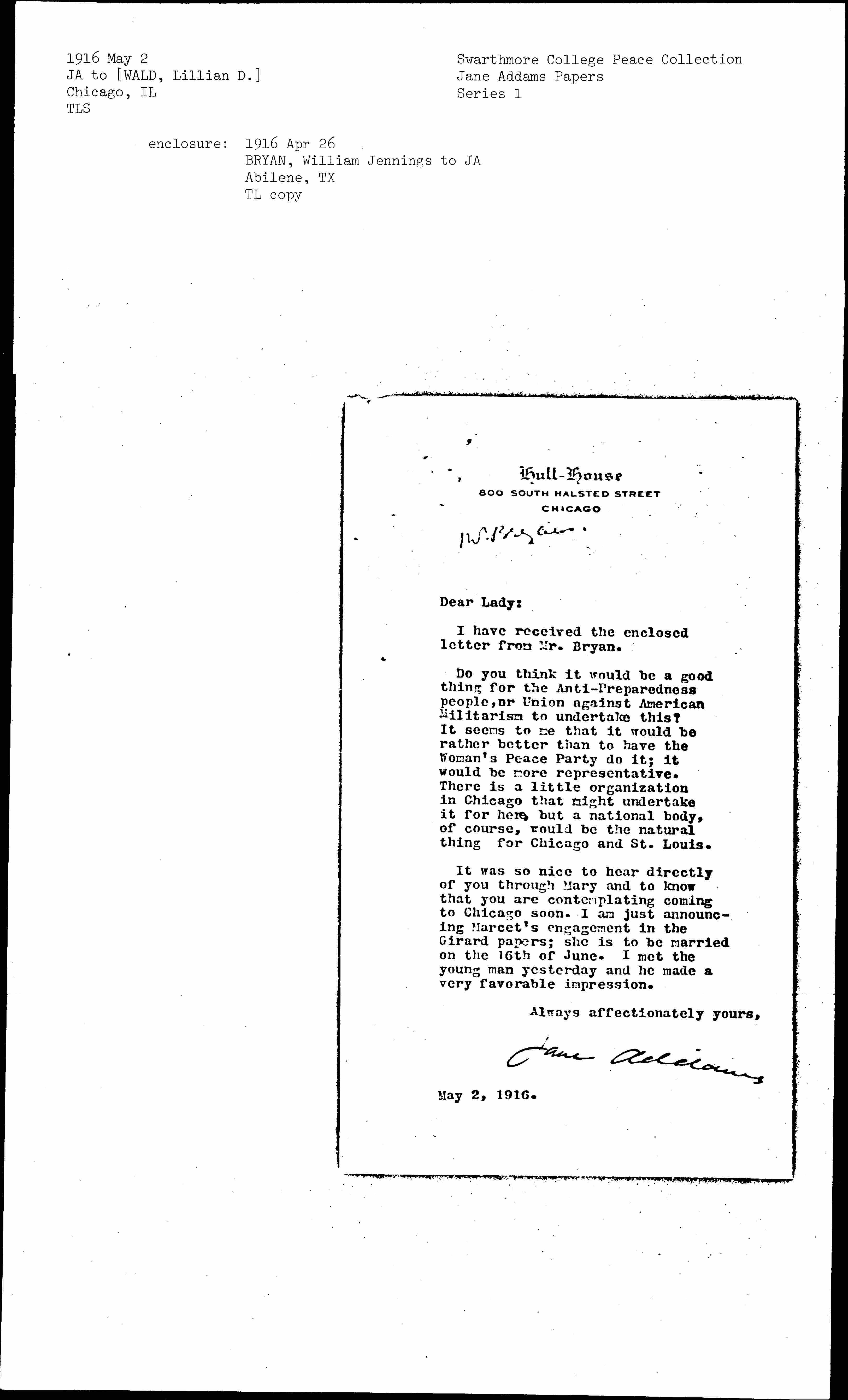 Jane Addams [signed]