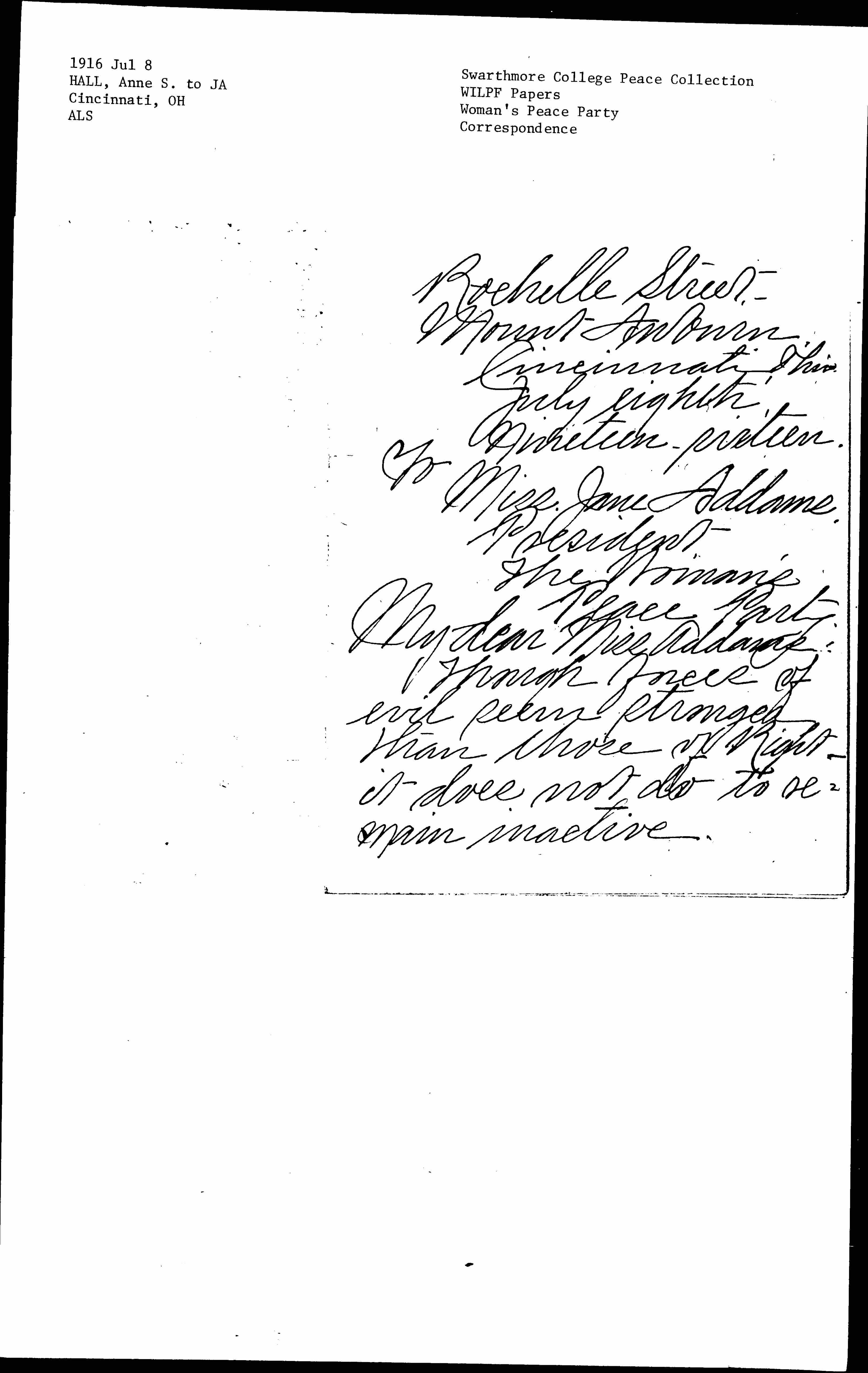My dear Miss Addams: