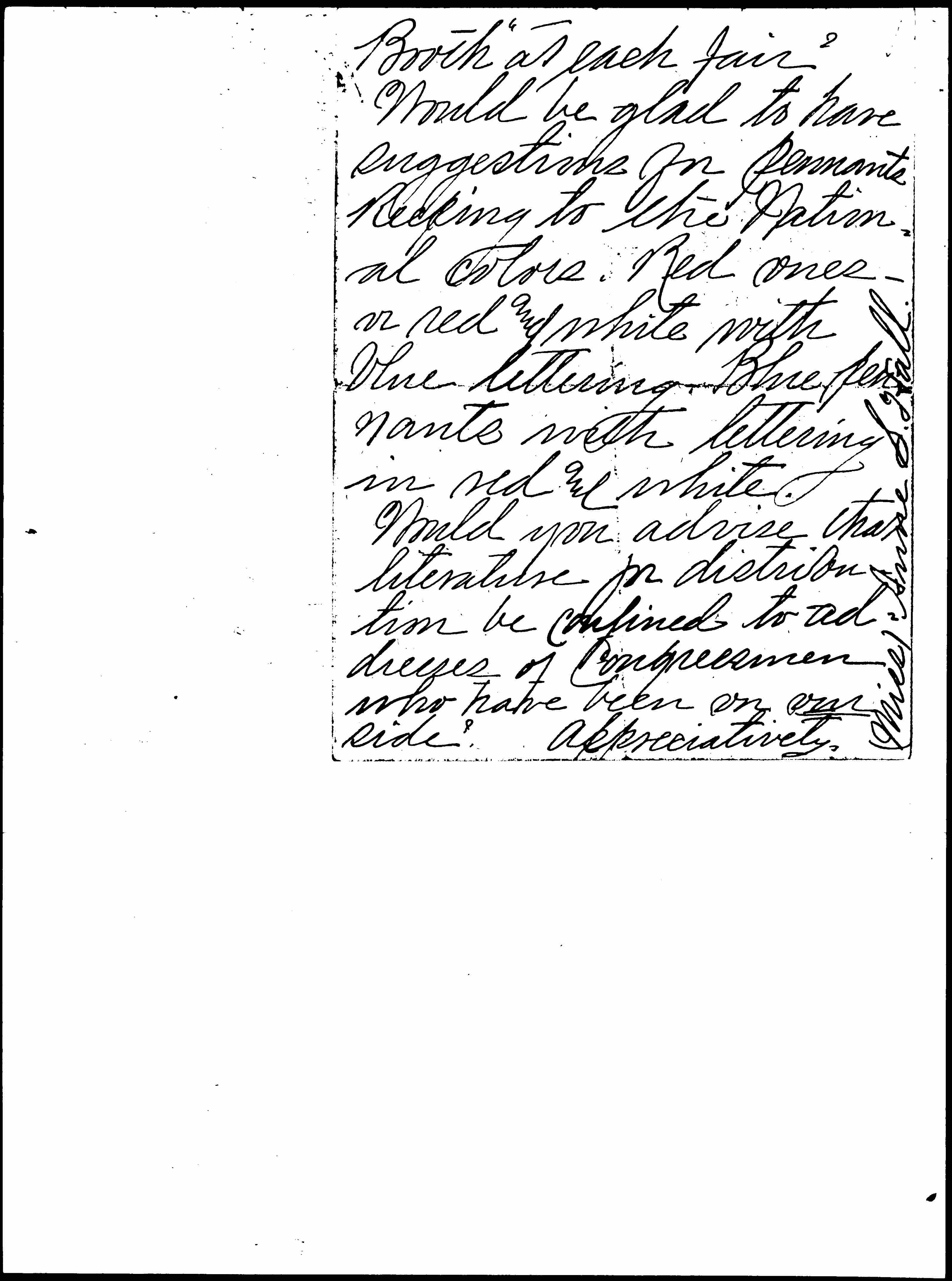 Asking him if he thought they would assist at the Carthage Fair Booth, answered "Yes" and gave me their address and shall [page 7] certainly communicate with them.