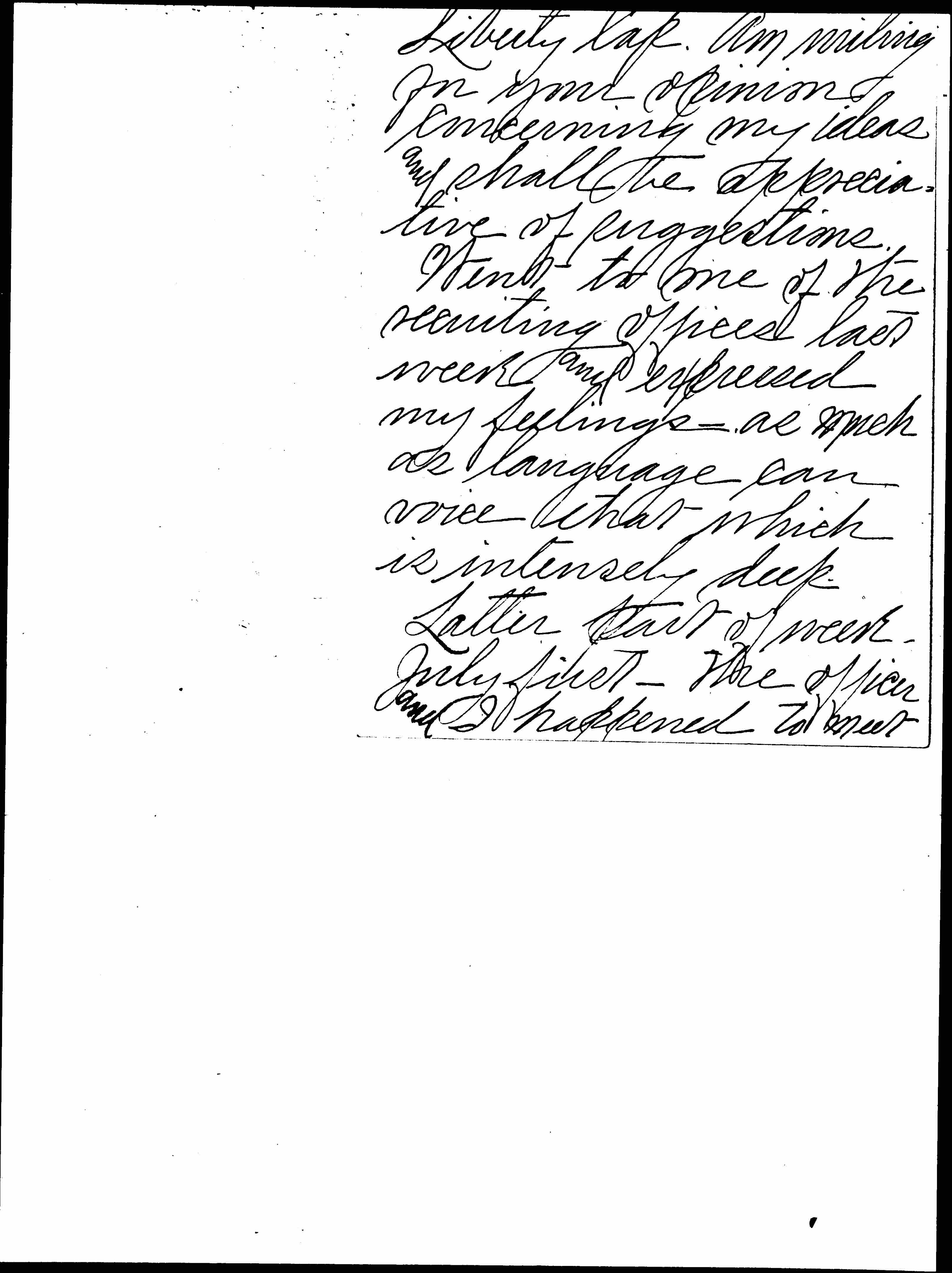 Latter part of week -- July first -- The officer and I happened to meet [page 6] in Deposit Department of a bank. To my surprise the officer said his Mother and sister are in sympathy with that for which I stand.