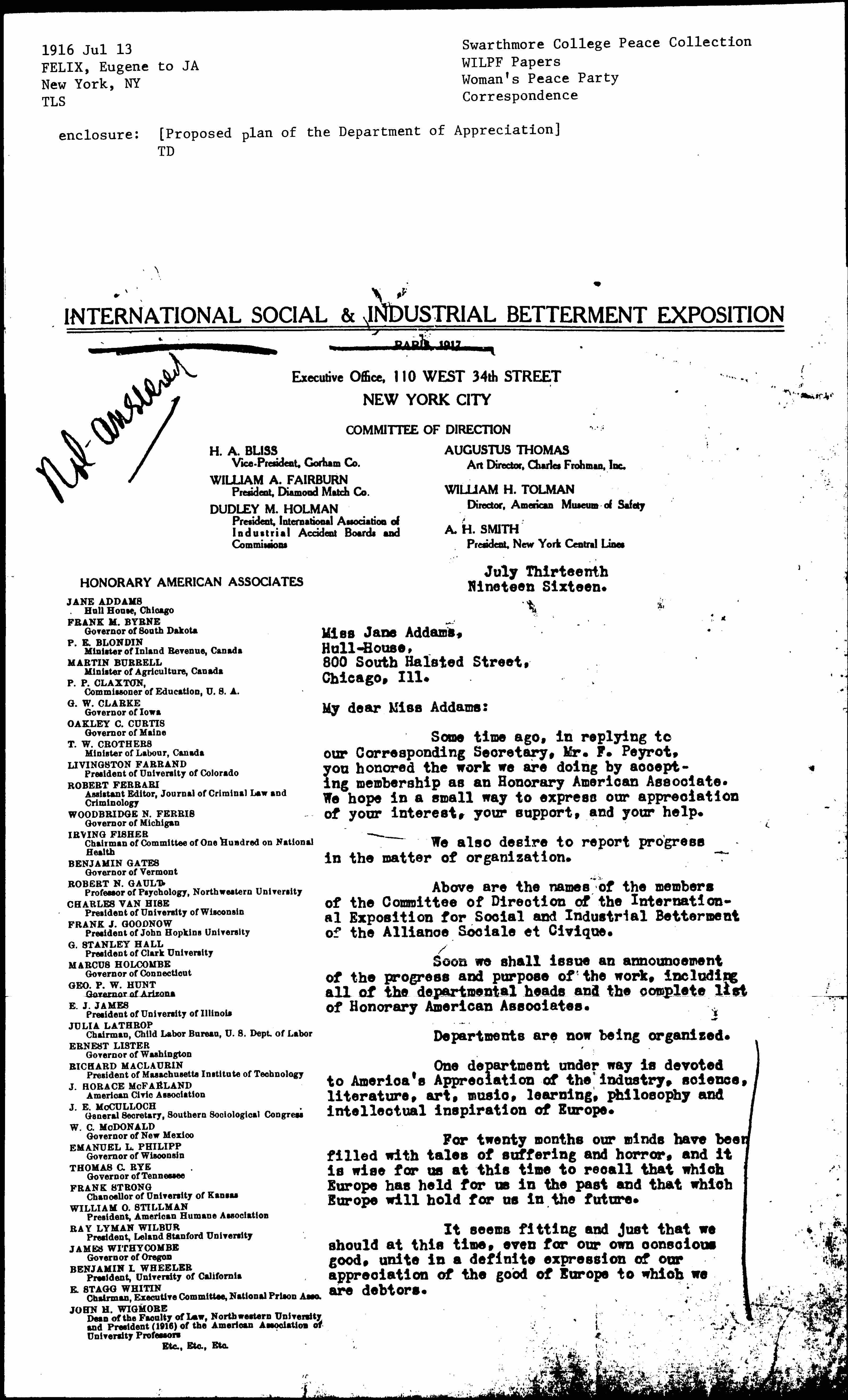 Above are the names of the members of the Committee of Direction of the International Exposition for Social and Industrial Betterment of the Alliance Sociale et Civique.