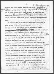 In reviewing let us say that the adaptation of Christianity cannot be made (1) by self conscious people because they, from the very nature of the case can have no adaptability (2) It cannot be made by vain or conceited people ↑self absorbed people↓ because self absorption precludes the power of conception ↑perception↓ -– the egoist of every type becomes surrounded as in a shell, by his own thoughts and feelings ↑ambitions↓ and cannot break through. (3↑2↓) It, cannot be done by people careful of their reputation and influence, because the very situation demands those who must differ,- who must expose themselves to criticism and misunderstanding, -- who must moreover, see ↑receive↓ this criticism from people high in Christian places, because those high places often lose touch with the real world. (4↑3↓) It cannot be made by people who are habituated to an atmosphere of preparation, because the process of adaptation must be carried on, not only by quick perception, but by power of prompt action; to see an opportunity for furthering this delicate adjustment, and to decide "to wait ↑stay↓ a little" is to altogether lose that opportunity. (5↑4↓) Last of all, it cannot be done by self [page 7] righteous people, because they have from the very beginning been a stumbling block to Christianity,– the only people toward whom the gentle Founder allowed himself to be severe.