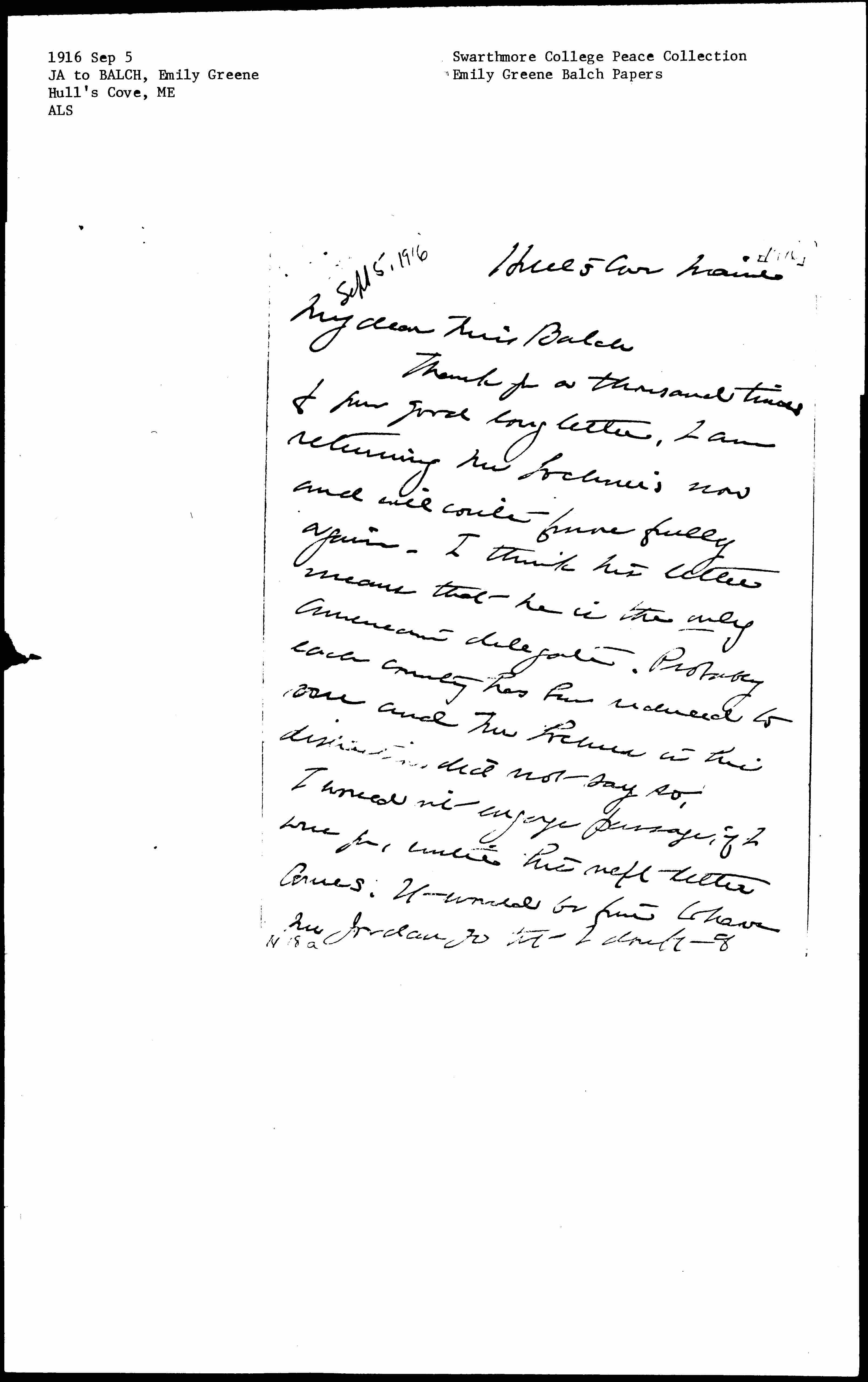 I wouldn't engage passage, if I were you, until his next letter comes. It would be fine to have Mr Jordan go but I doubt if [page 2] can stand for his salary, perhaps not even for the expenses of himself & wife. I wish we could make the Carnegie people do something, they once engaged him for a long piece of work after the Balkan War.