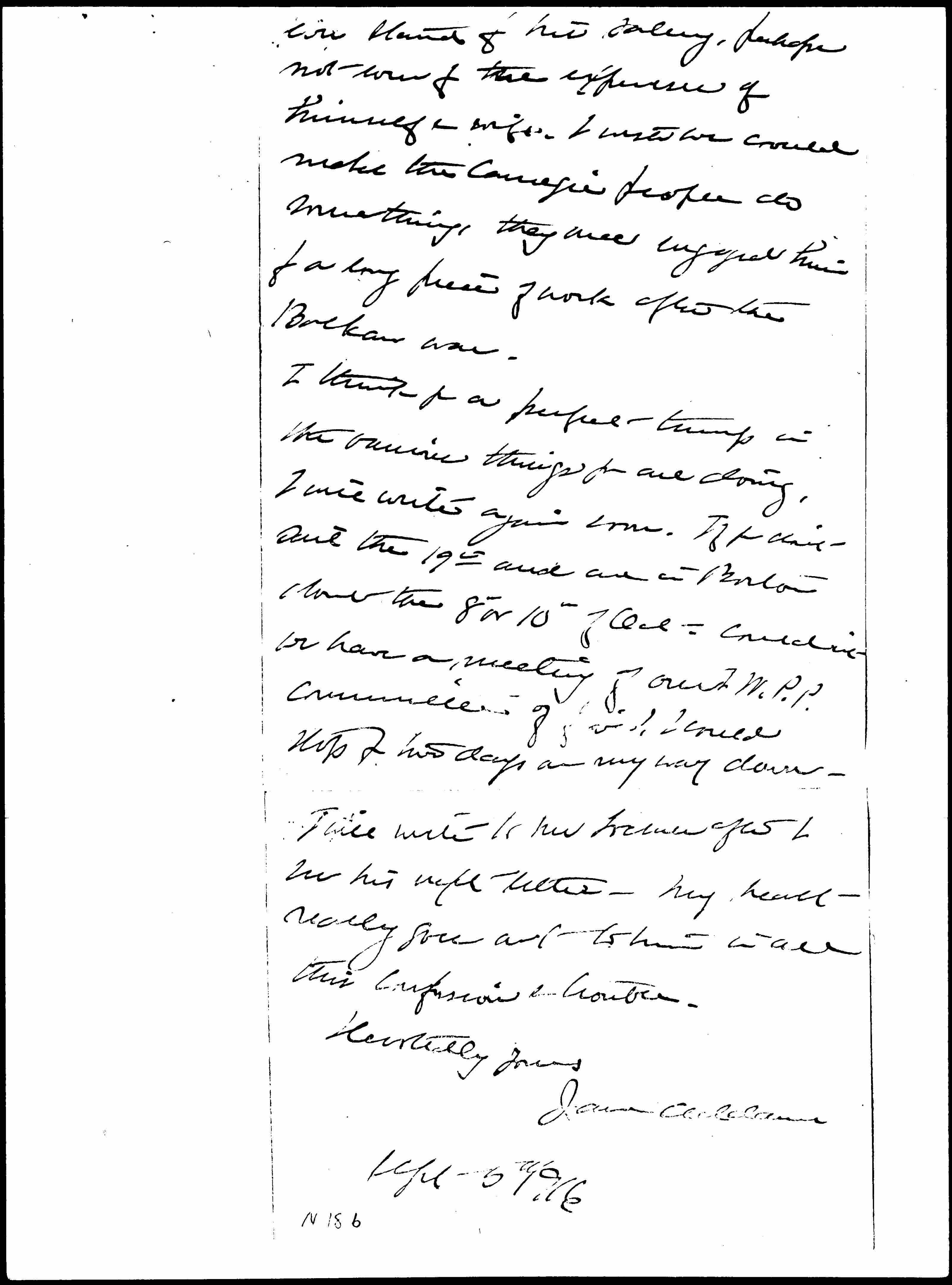 I think you a perfect trump in the various things you are doing. I will write again soon. If you don't sail the 19th and are in Boston about the 8th or 10th of Oct. couldn't we have a meeting of our I.W.P.P. committee of five? I could stop for two days on my way down.