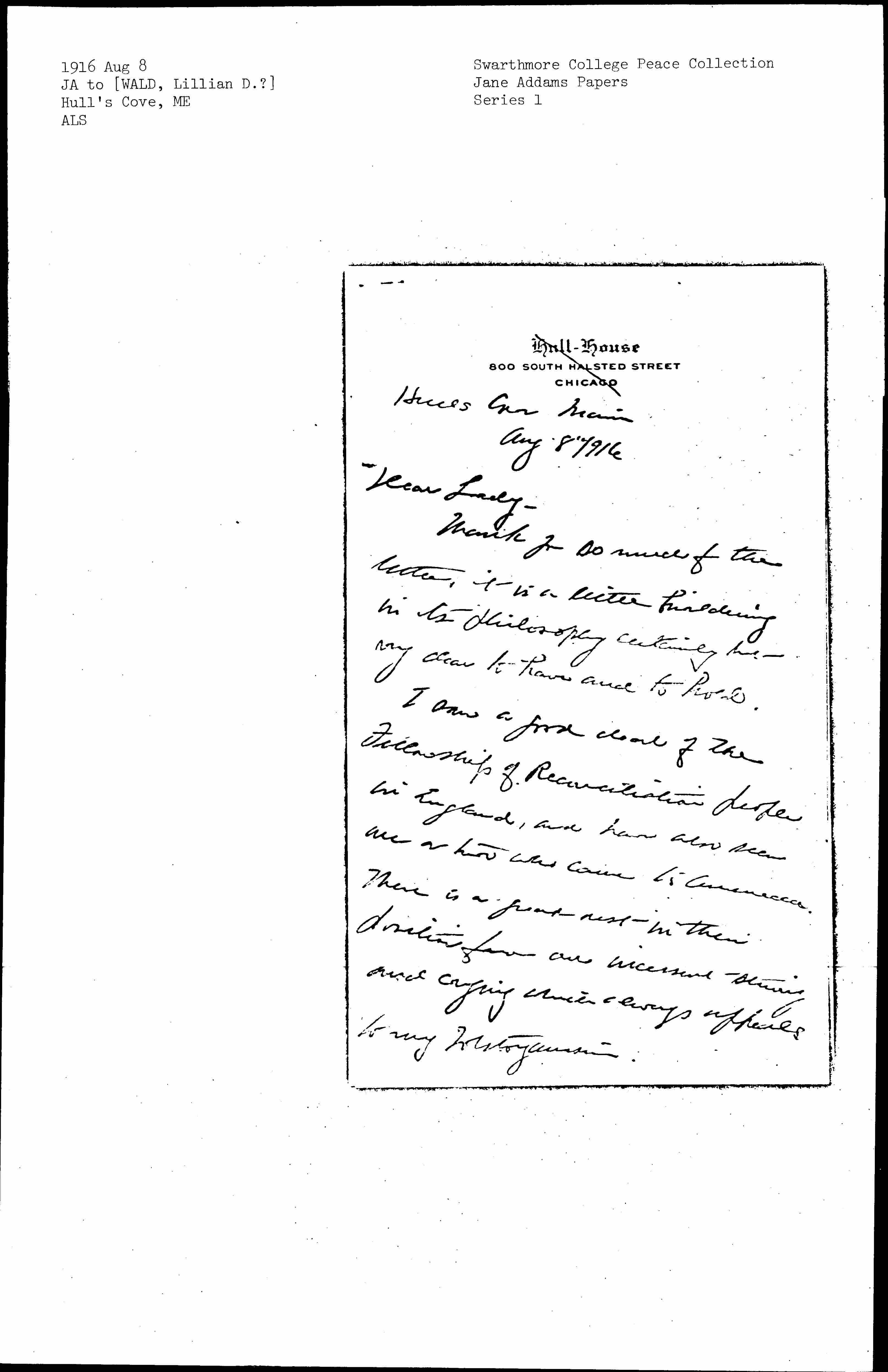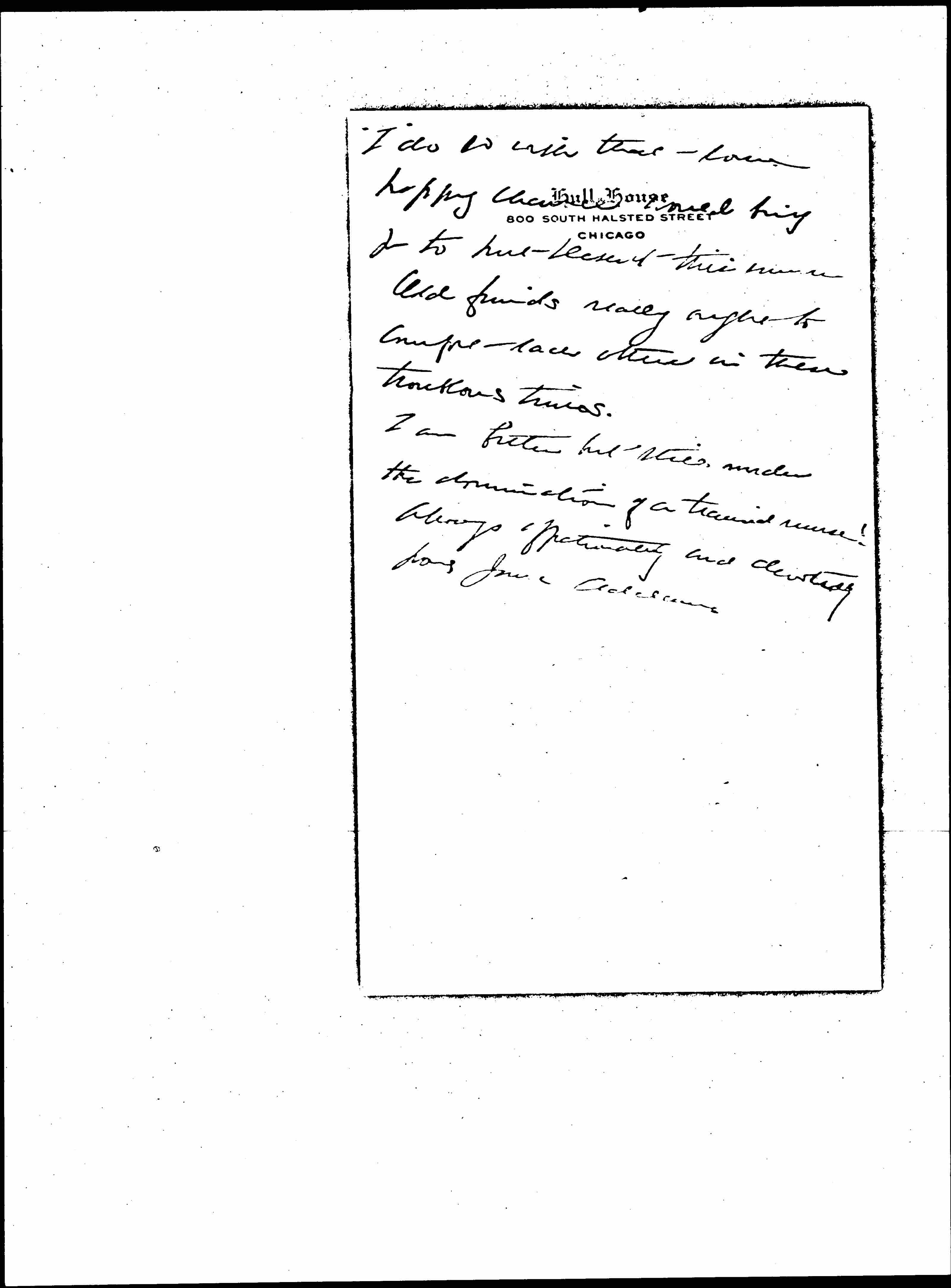 I am better but still under the domination of a trained nurse! Always affectionately and devotedly yours Jane Addams