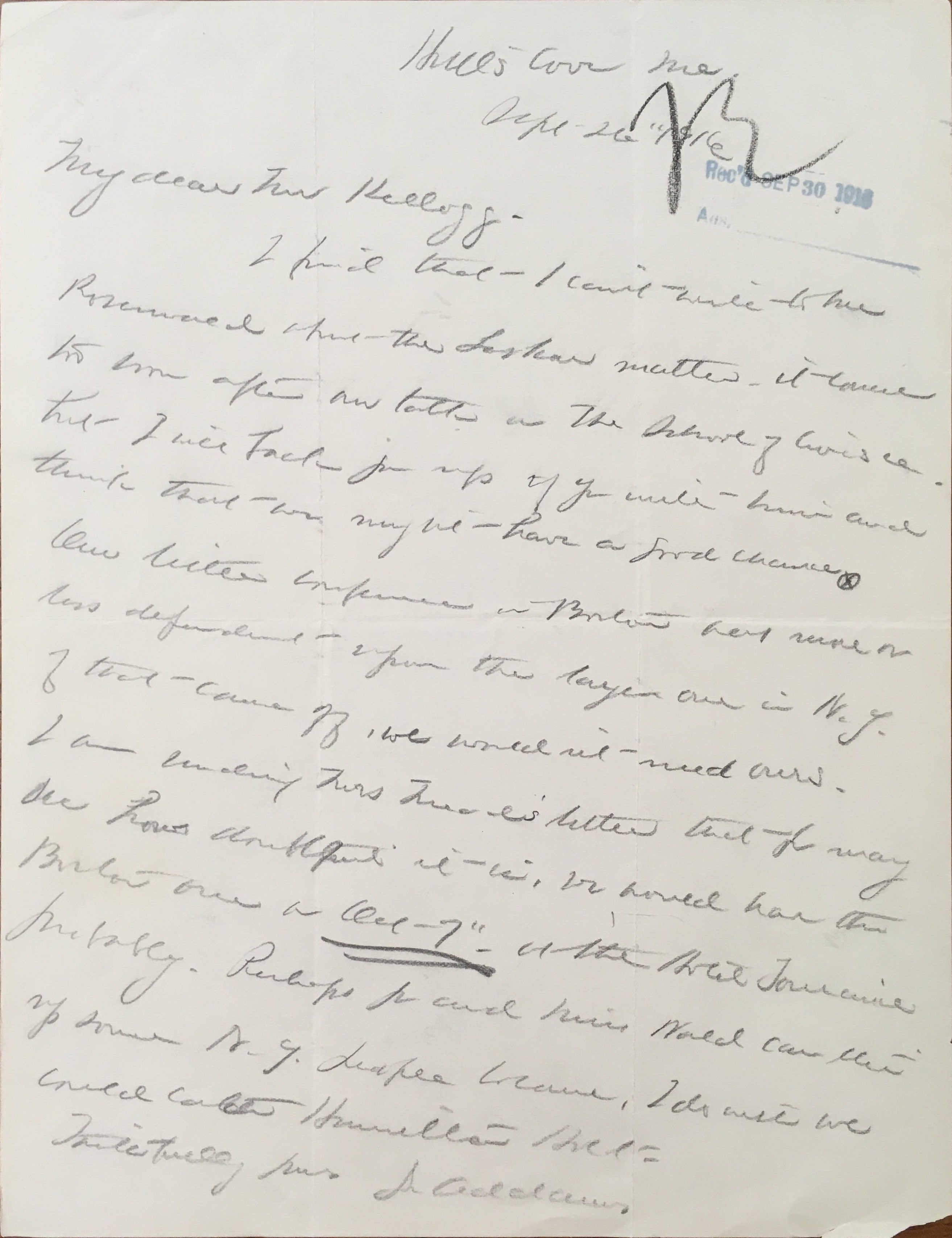 I am sending Mrs Mead's letter that you may see how doubtful it is. We would have the Boston one on Oct 7" -- at the Hotel Touraine probably. Perhaps you and Miss Wald can stir up some N.Y. people to come. I do wish we could catch Hamilton Holt.