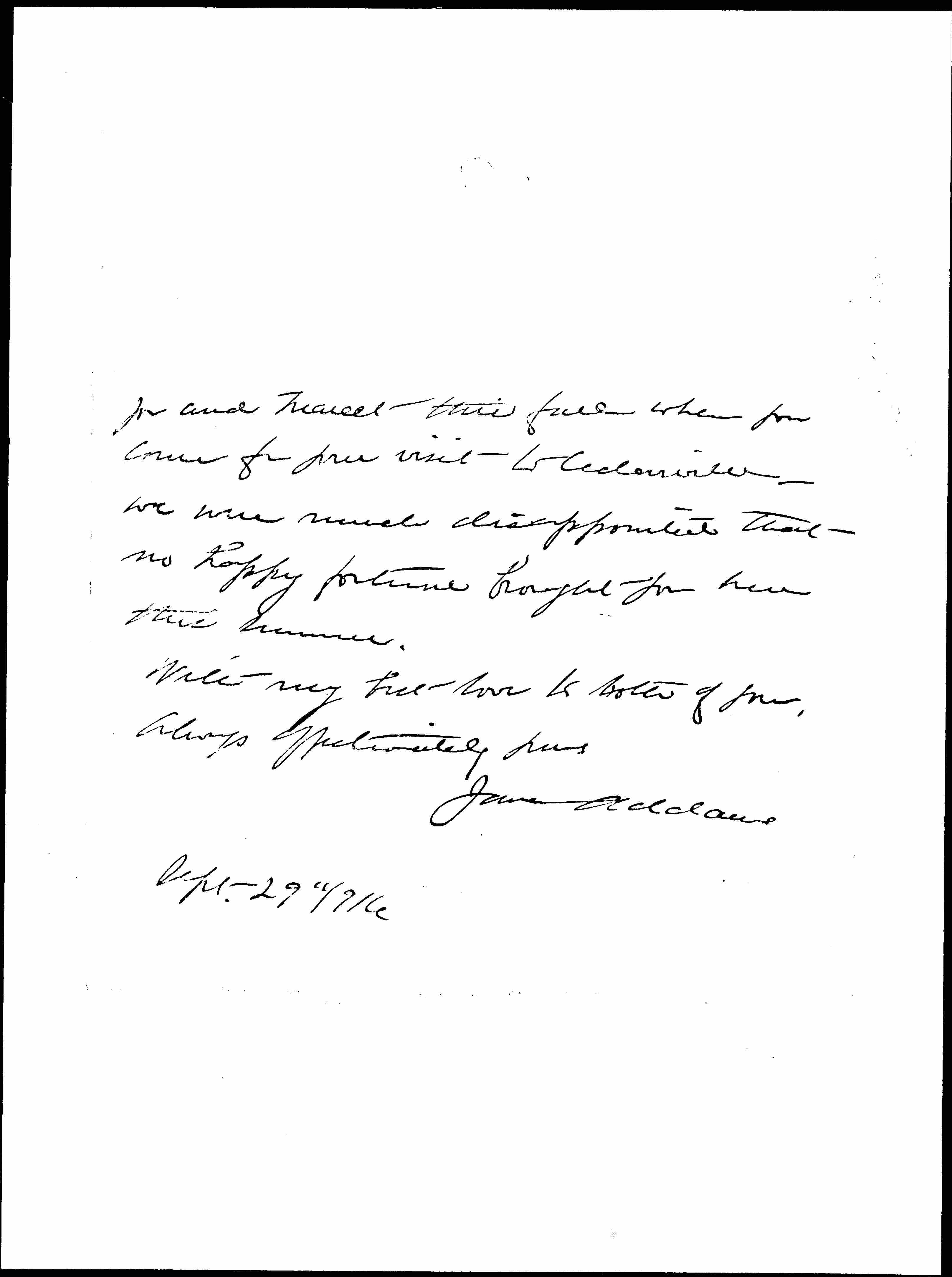 We leave here Oct. 5th and after a few days in Boston, go on to Chicago. I do hope that we are going to see [page 3] you and Marcet this fall when you come for your visit to Cedarville -- we were much disappointed that no happy fortune brought you here this summer.