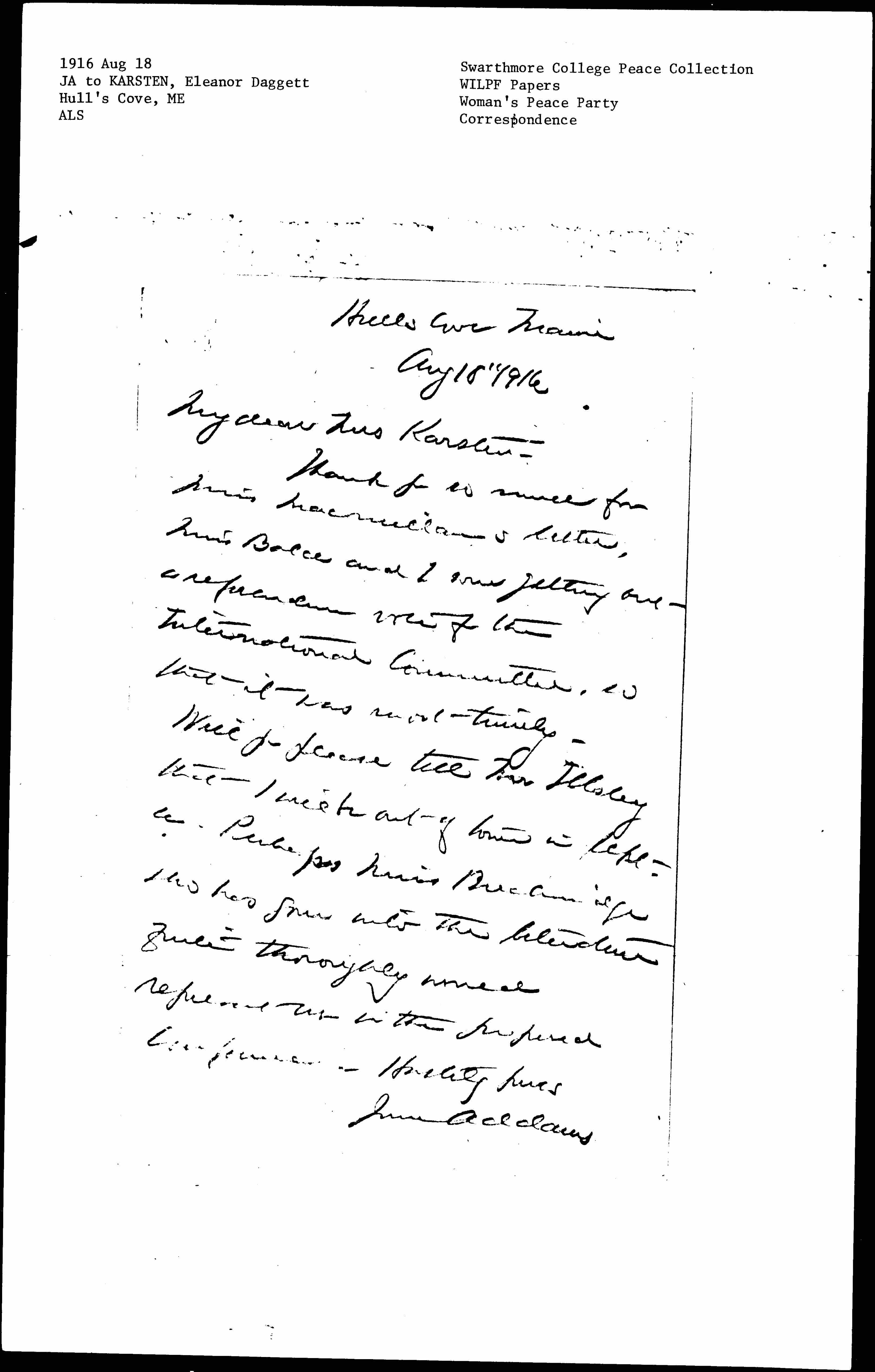 Thank you so much for Miss Macmillans letter. Miss Balch and I are getting out a referendum vote for the International Committee, so that it was most timely.