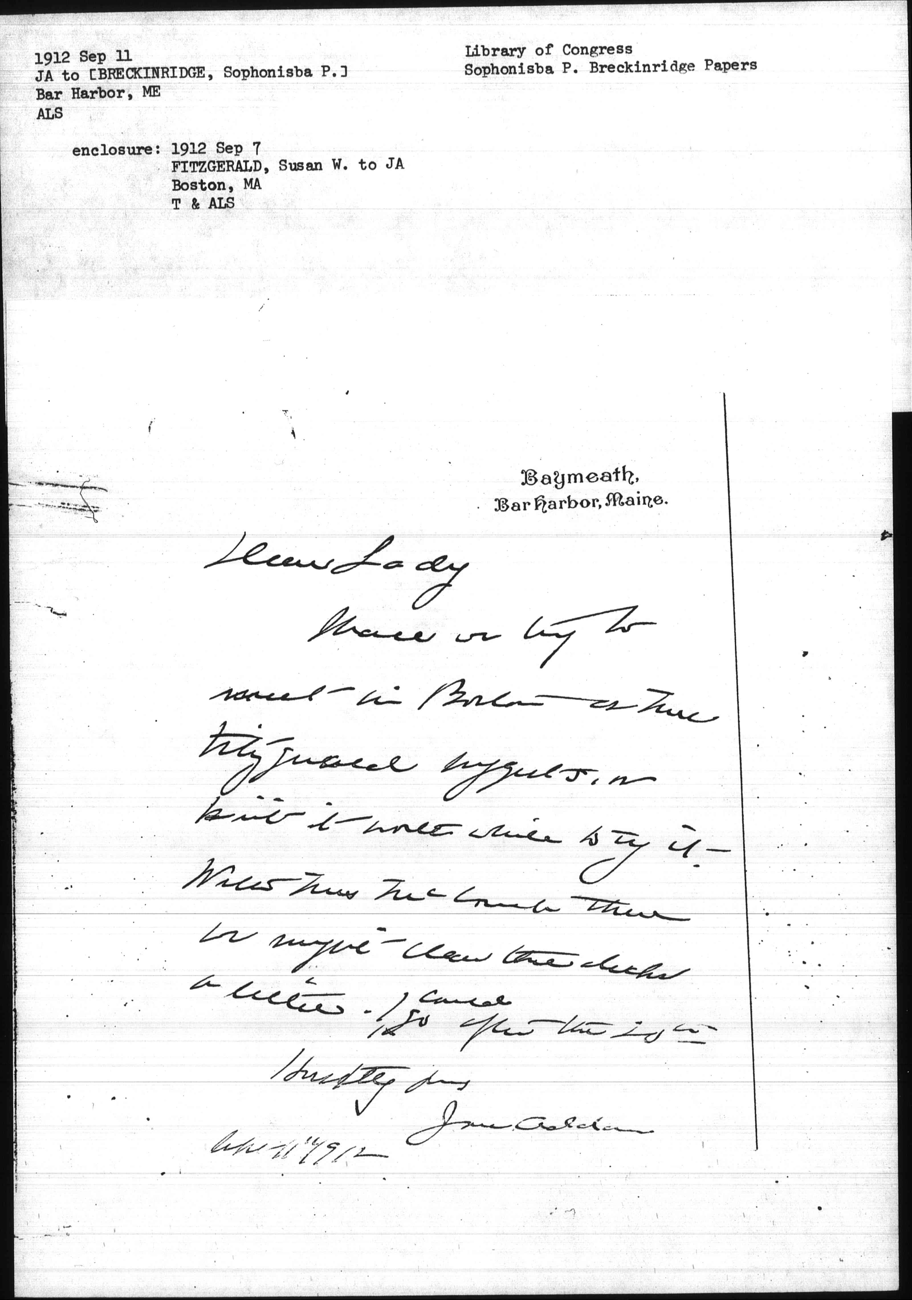 Shall we try to meet in Boston as Mrs [FitzGerald] suggests, or isn't it worth while to try it. With Mrs McCormick there we might clean [the ducks?] a letter. I <could> go after the 20th