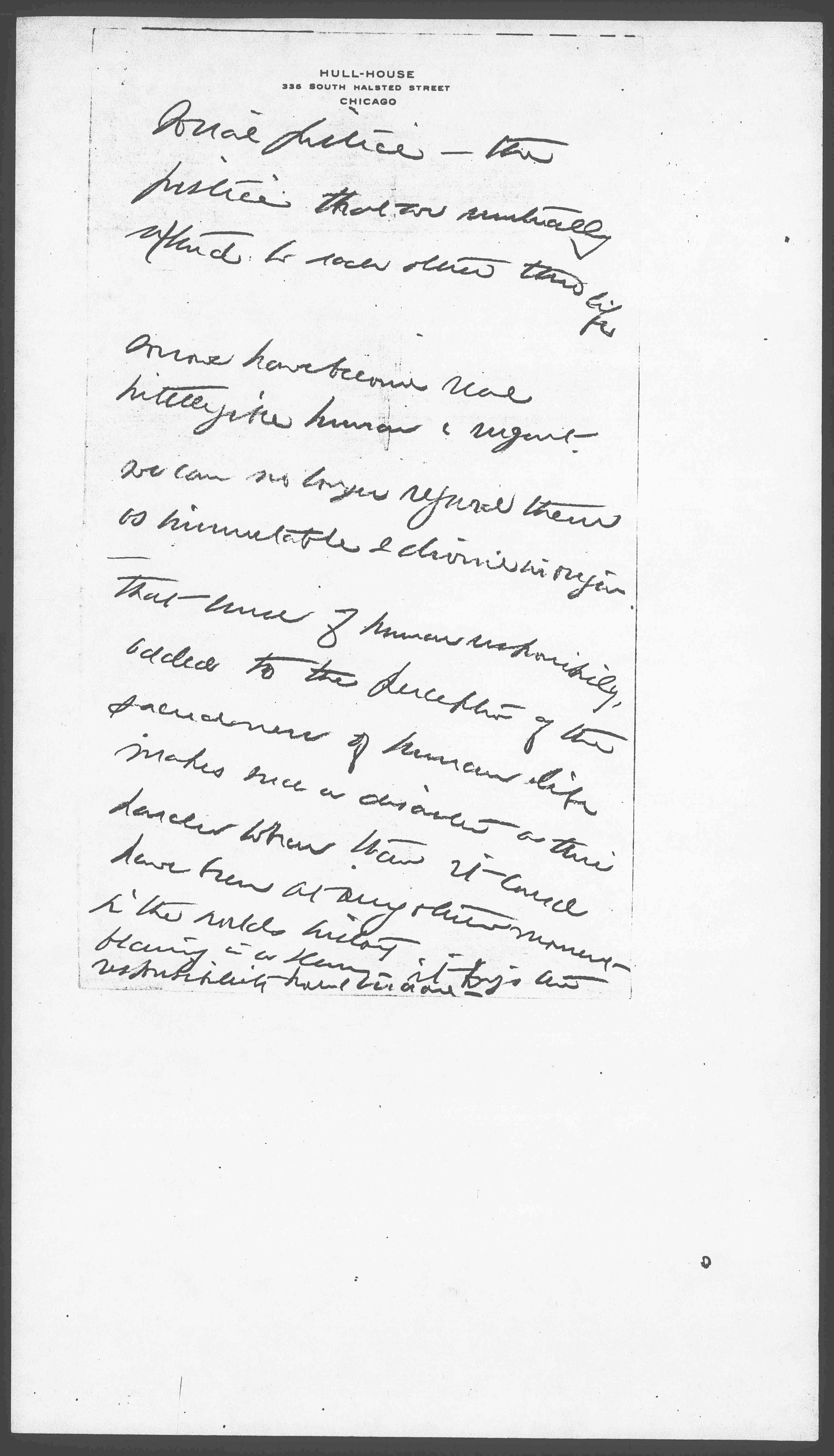 That sense of human responsibility, added to the perception of the sacredness of human life makes such a disaster as this harder to bear than it could have been at any other moment in the worlds history becoming in a [illegible] it by the responsibility [illegible words] [page 5]