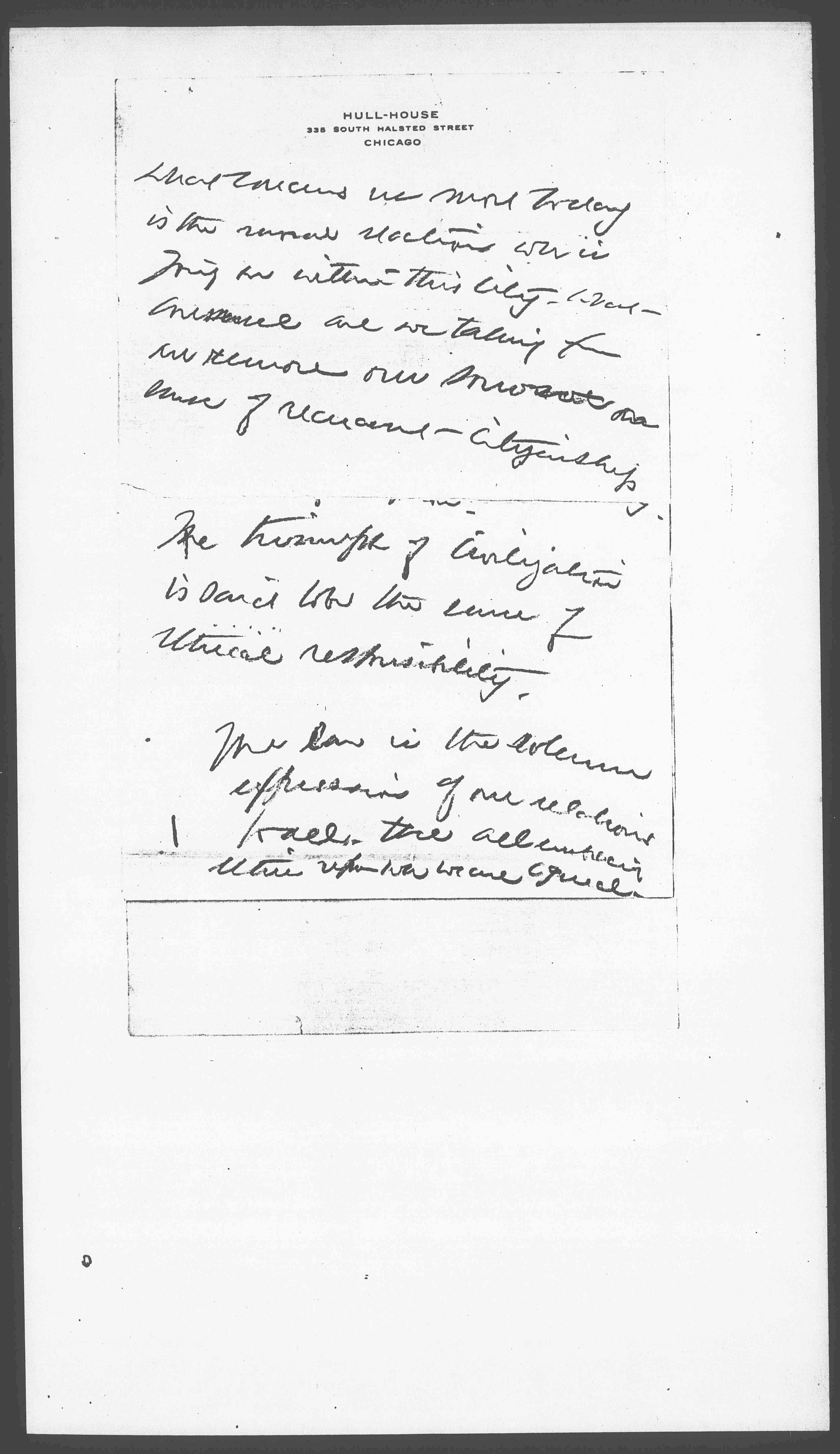 What concerns us most today is the moral reactions which is going on within this city—[What course] are we taking for our remorse our [sorrows] [our?] sense of recurrent citizenship.