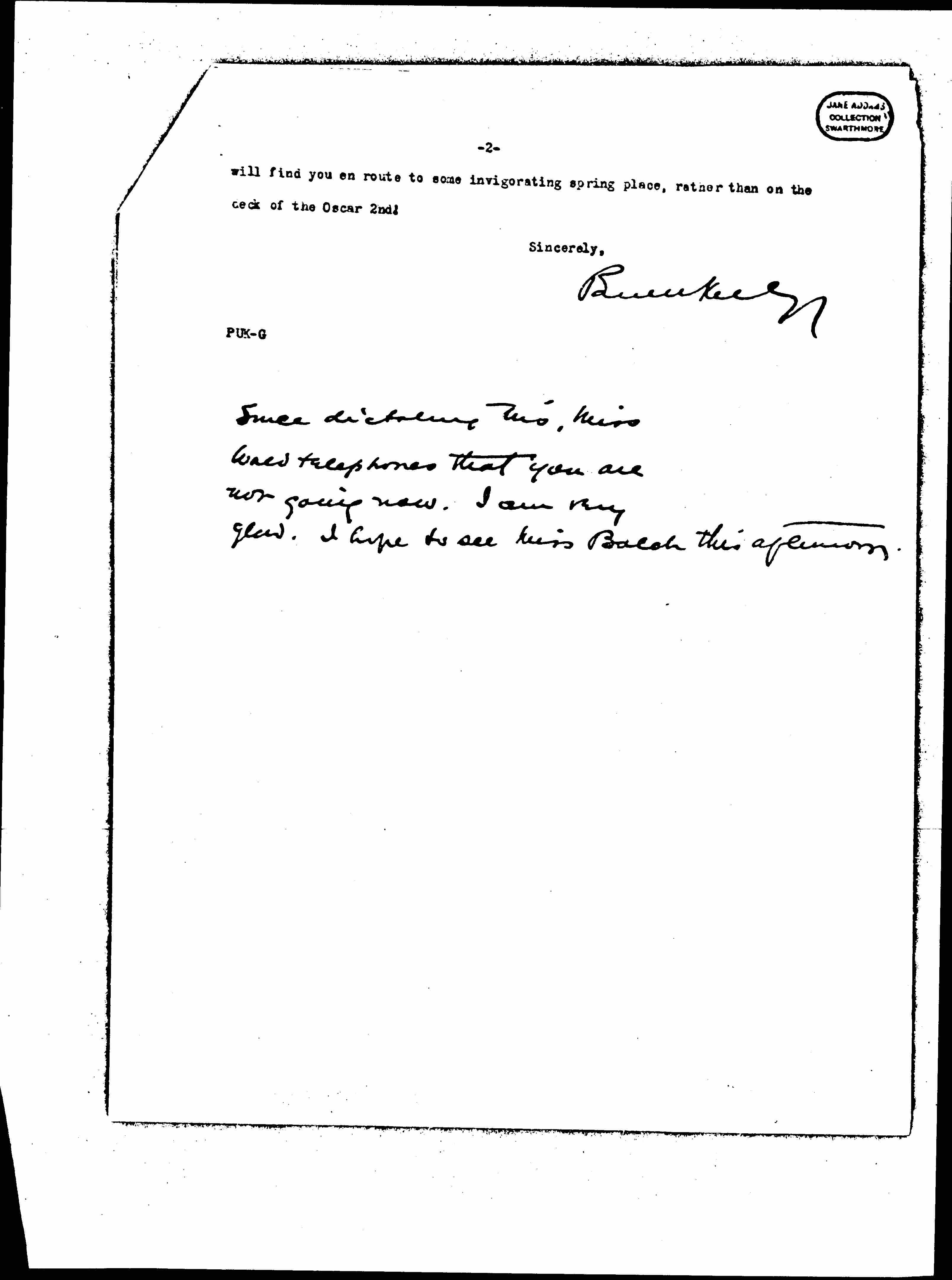 <Since dictating this, Miss Wald telephones that you are not going now. I am very glad. I hope to see Miss Balch this afternoon.>