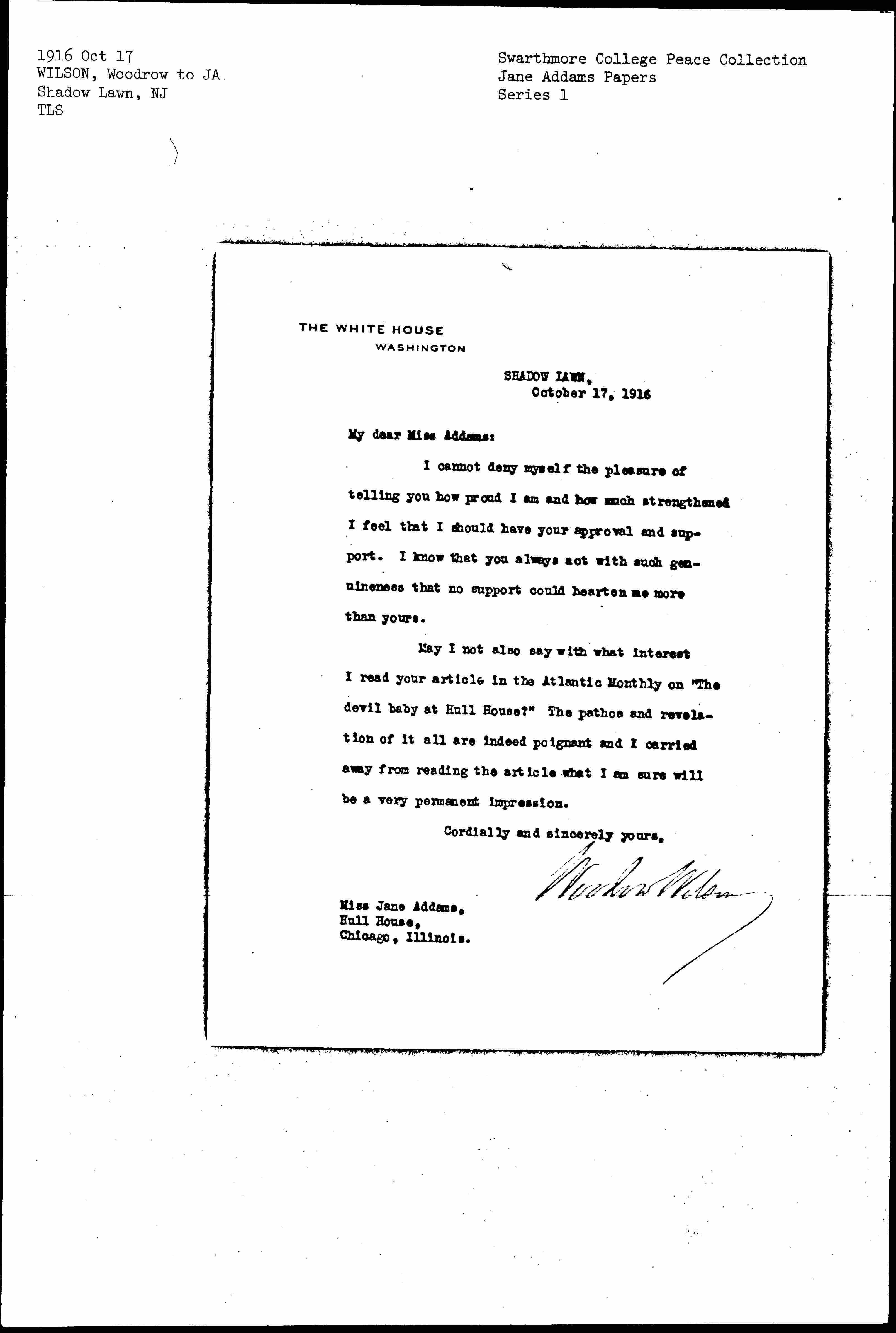 May I not also say with what interest I read your article in the Atlantic Monthly on "The devil baby at Hull House?" The pathos and revelation of it all are indeed poignant and I carried away from reading the article what I am sure will be a very permanent impression.