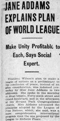 JANE ADDAMS EXPLAINS PLAN OF WORLD LEAGUE
