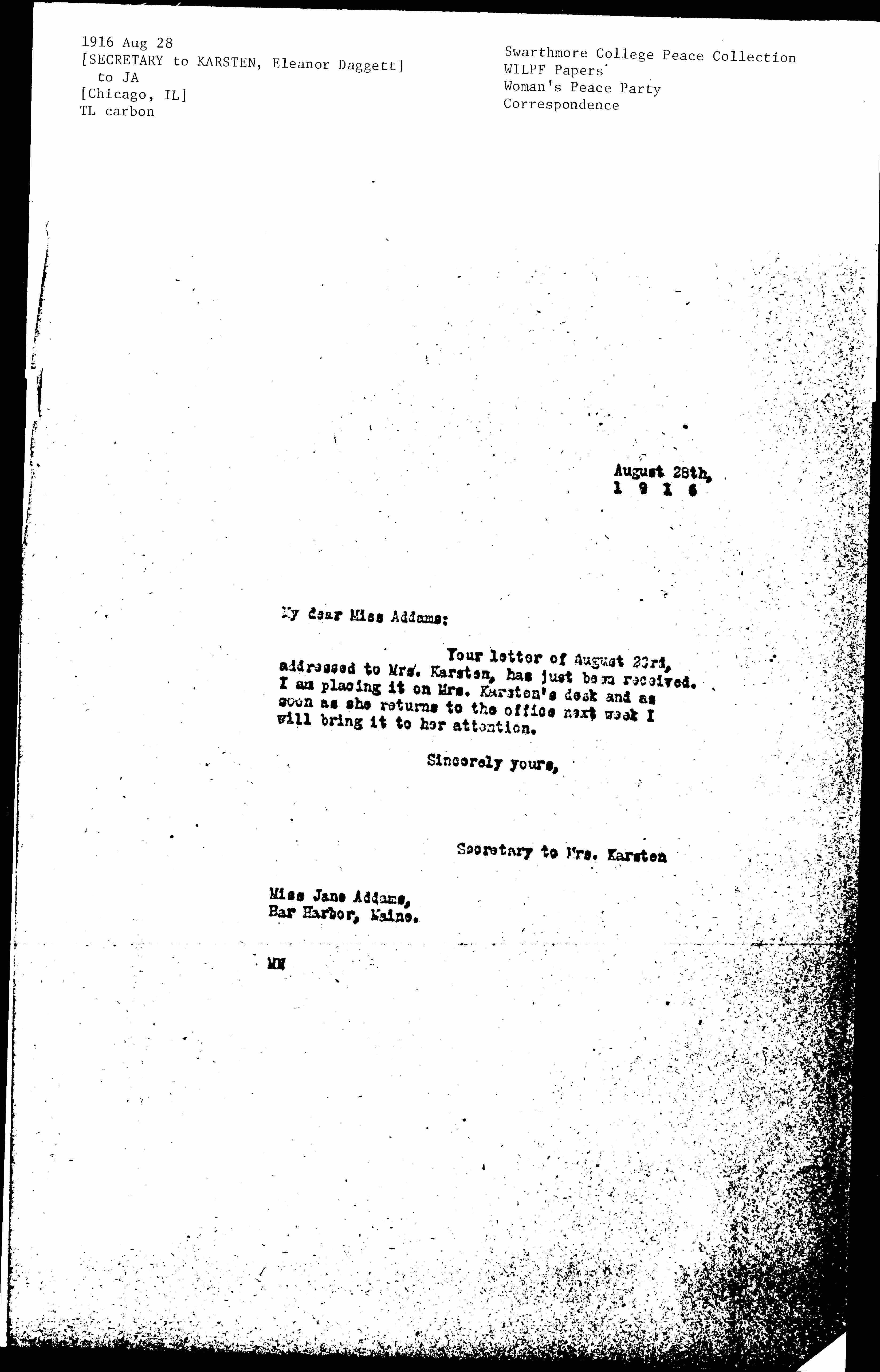 My dear Miss Addams: