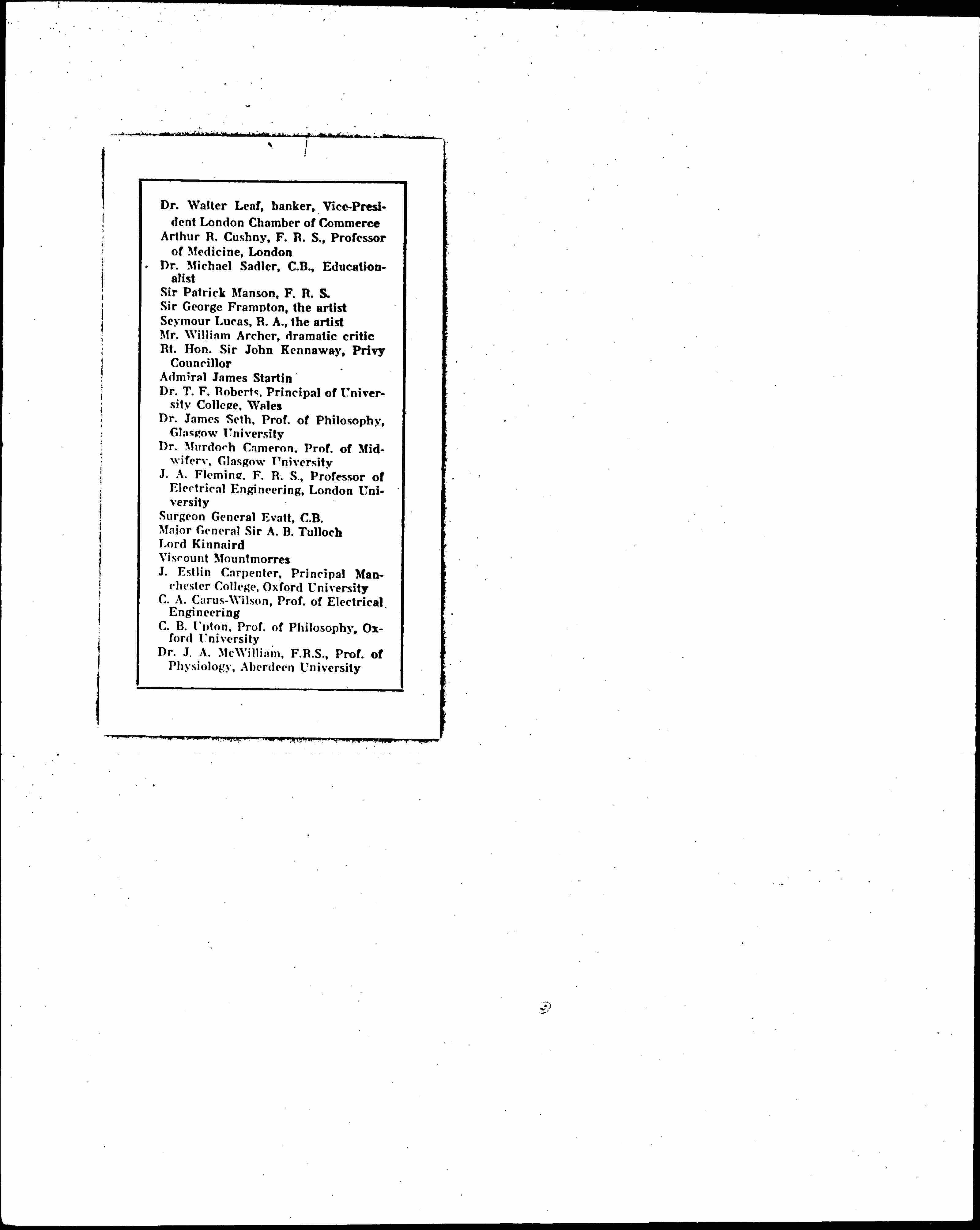J. A. Fleming, F.R.S., Professor of Electrical Engineering, London University