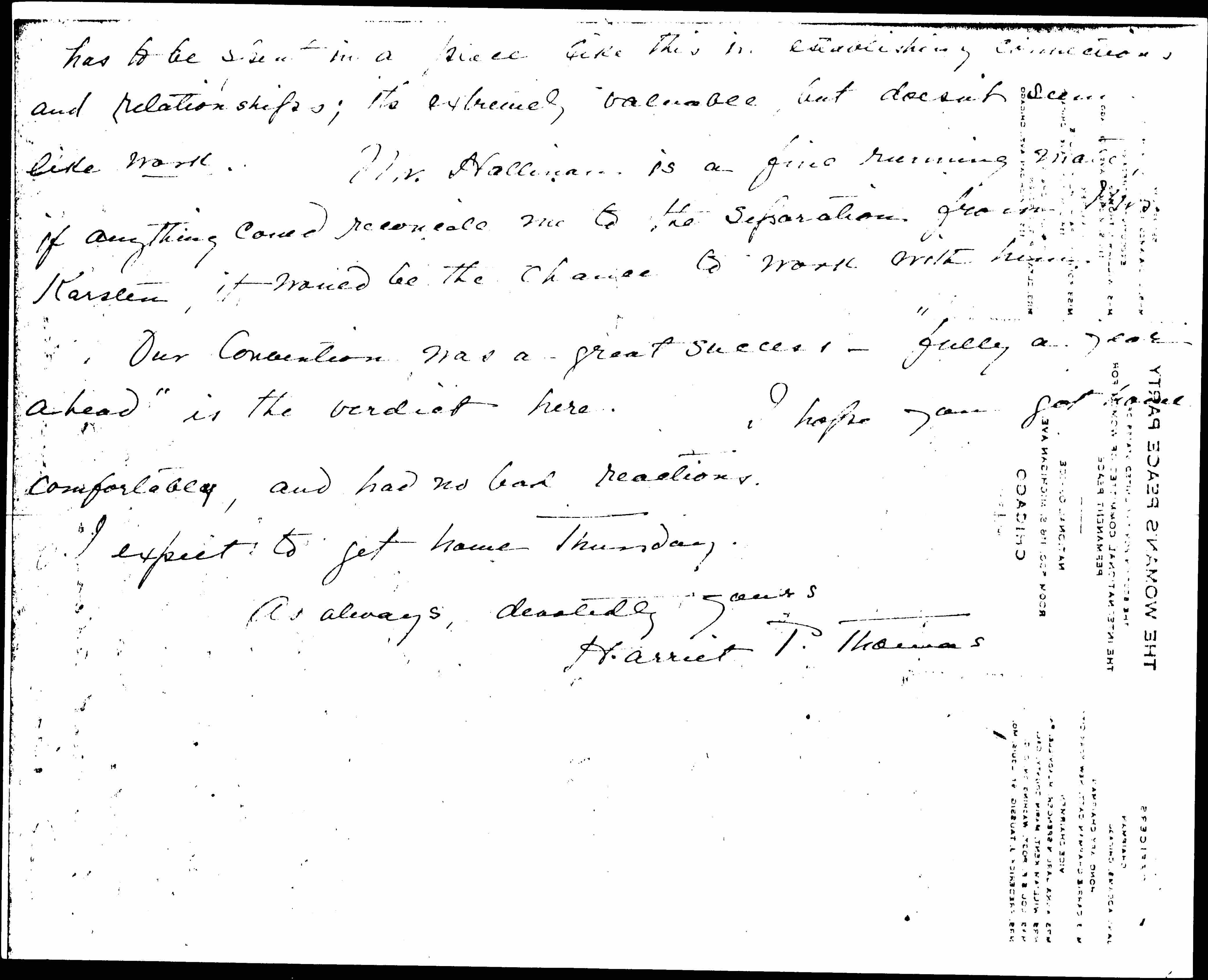 I have also called upon Mr. Call and notified Mrs. Spencers treaty with him. He was quite cordial and understands of course that it will be a great advantage to us to be on the ground floor. A good deal of time (over) [page 4] has to be spent in a place like this in establishing connections and relationships; it's extremely valuable but doesn't seem like work.