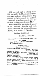 Funds should be sent to the treasurer of the National Armenia and India Relief Association for Industrial Orphan Homes, Miss Emily C. Wheeler,