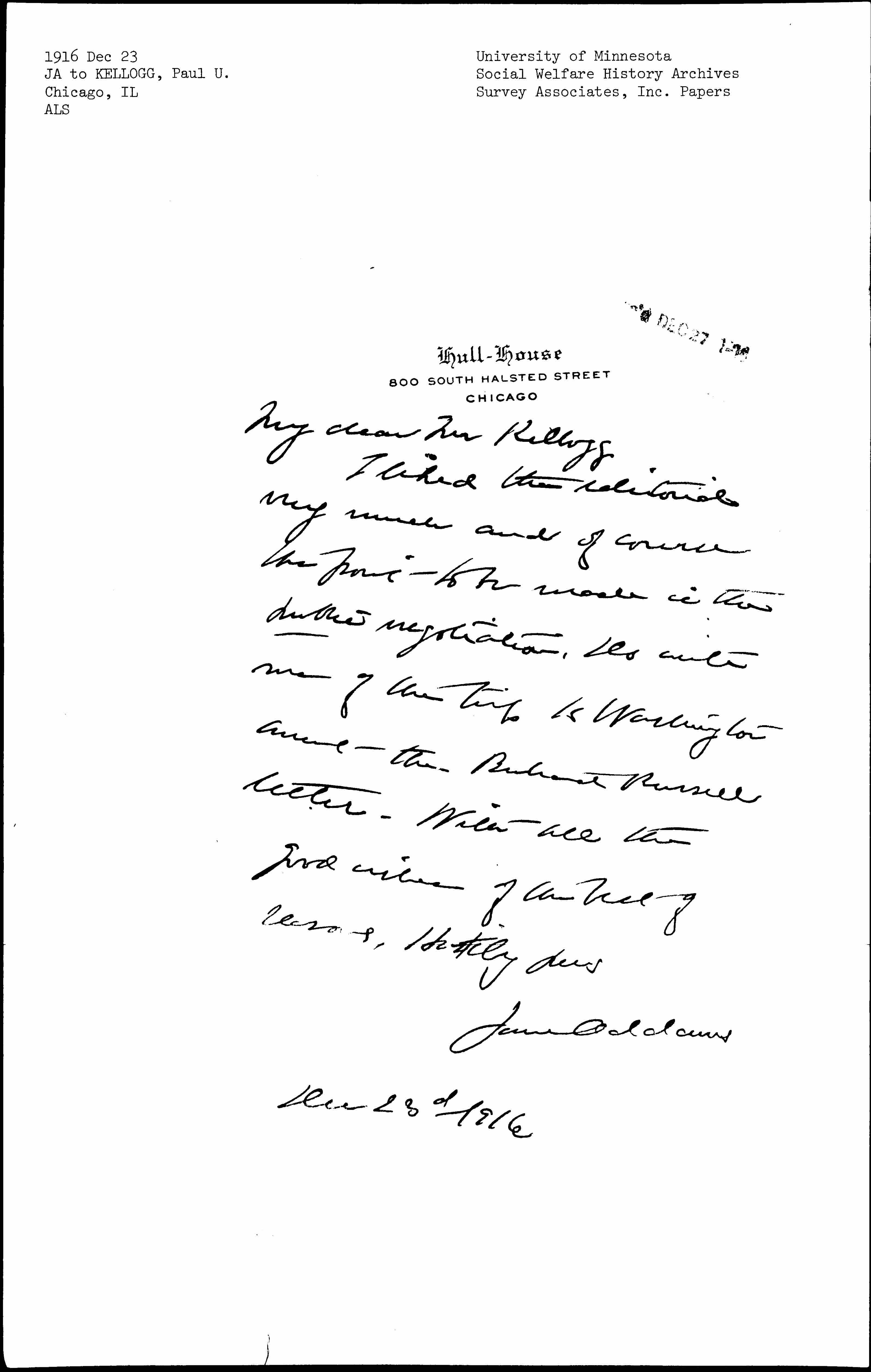 I liked the editorial very much and of course the point to be made is the public negotiation. Do write me of the trip to Washington anent the Bertrand Russell letter. With all the good wishes of the best of seasons, Hastily yours