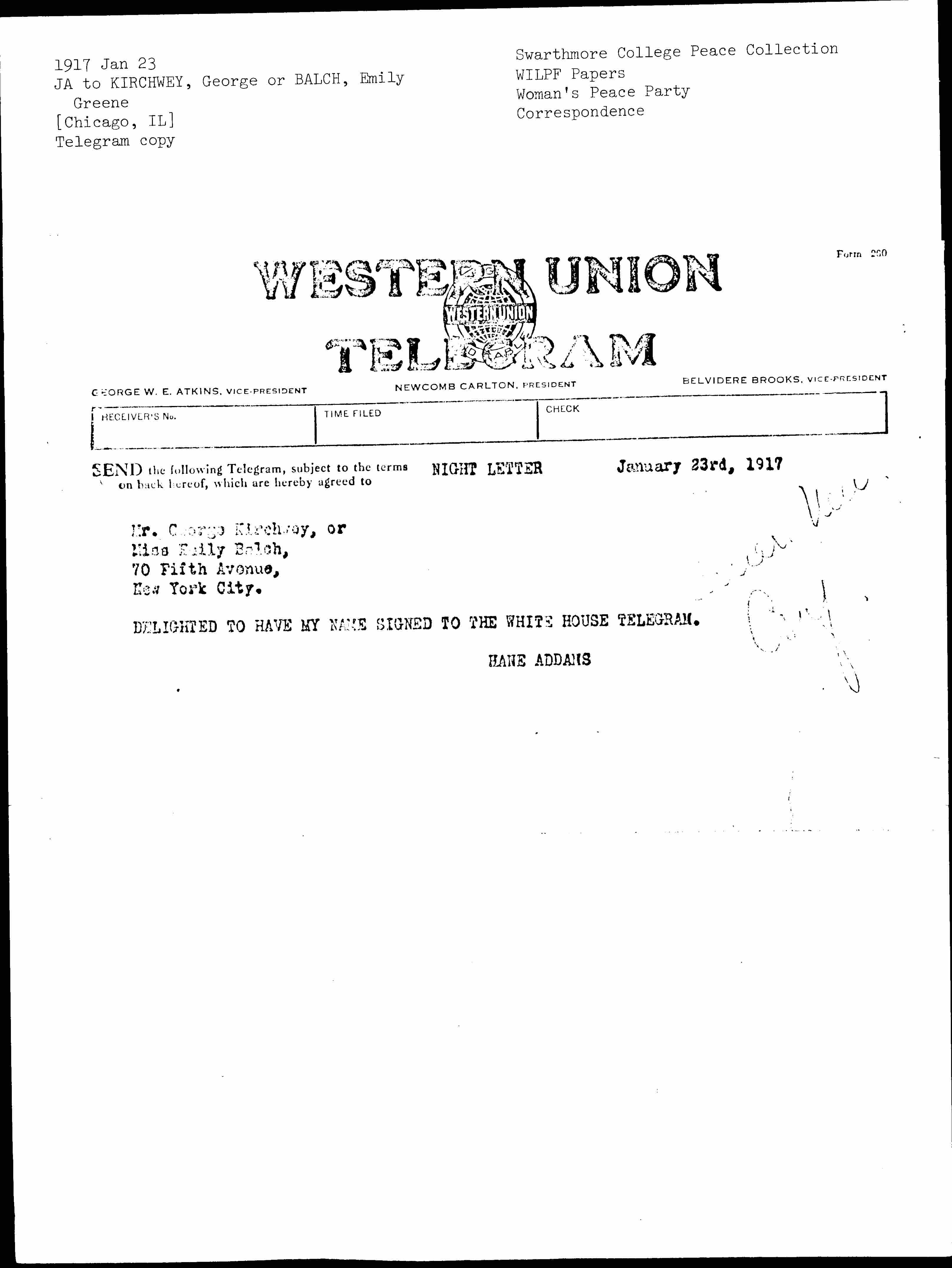 DELIGHTED TO HAVE MY NAME SIGNED TO THE WHITE HOUSE TELEGRAM.
