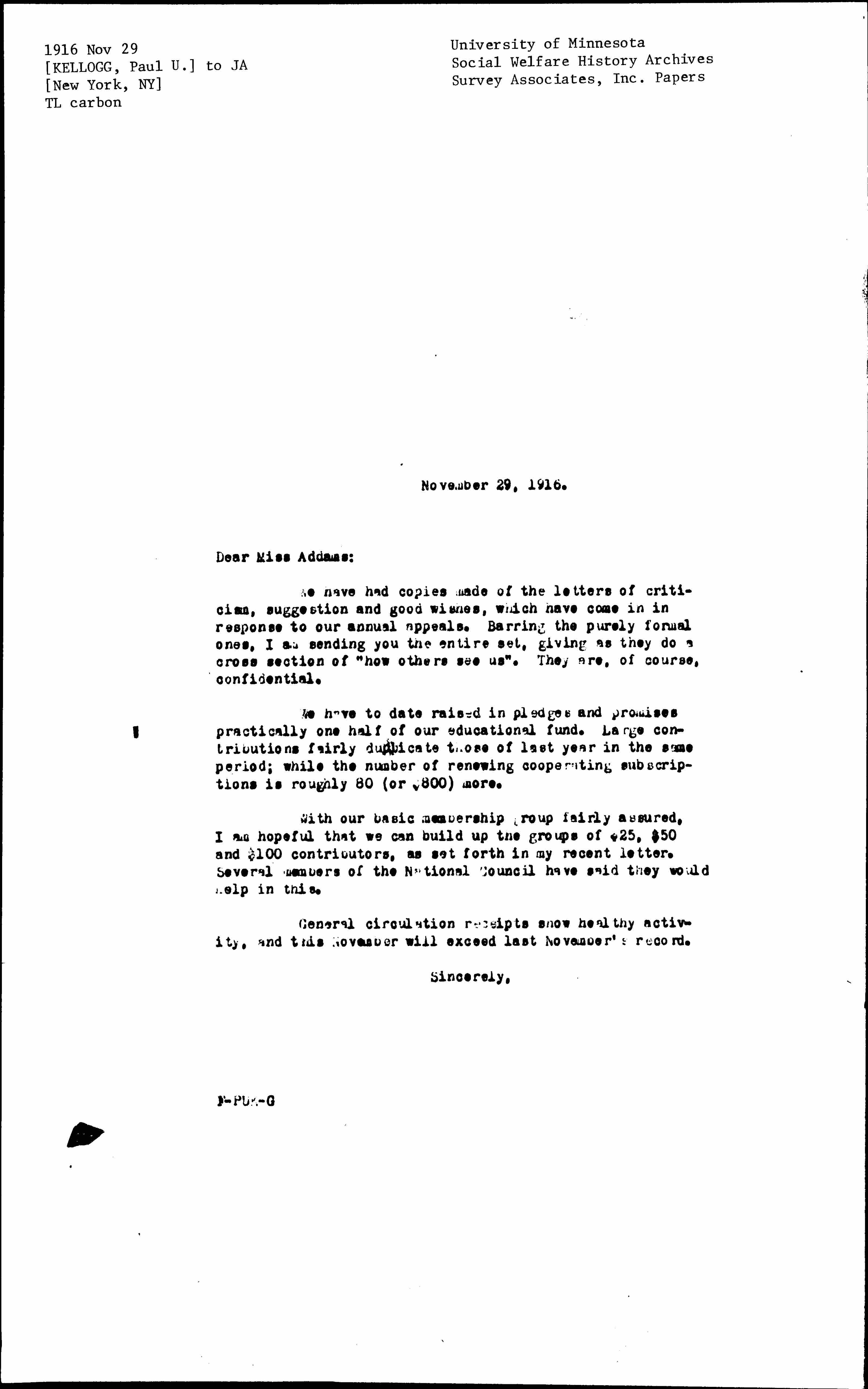 We have to date raised in pledges and promises practically one half of our educational fund. Large contributions fairly duplicate those of last year in the same period; while the number of renewing cooperating subscriptions is roughly 80 (or $800) more.