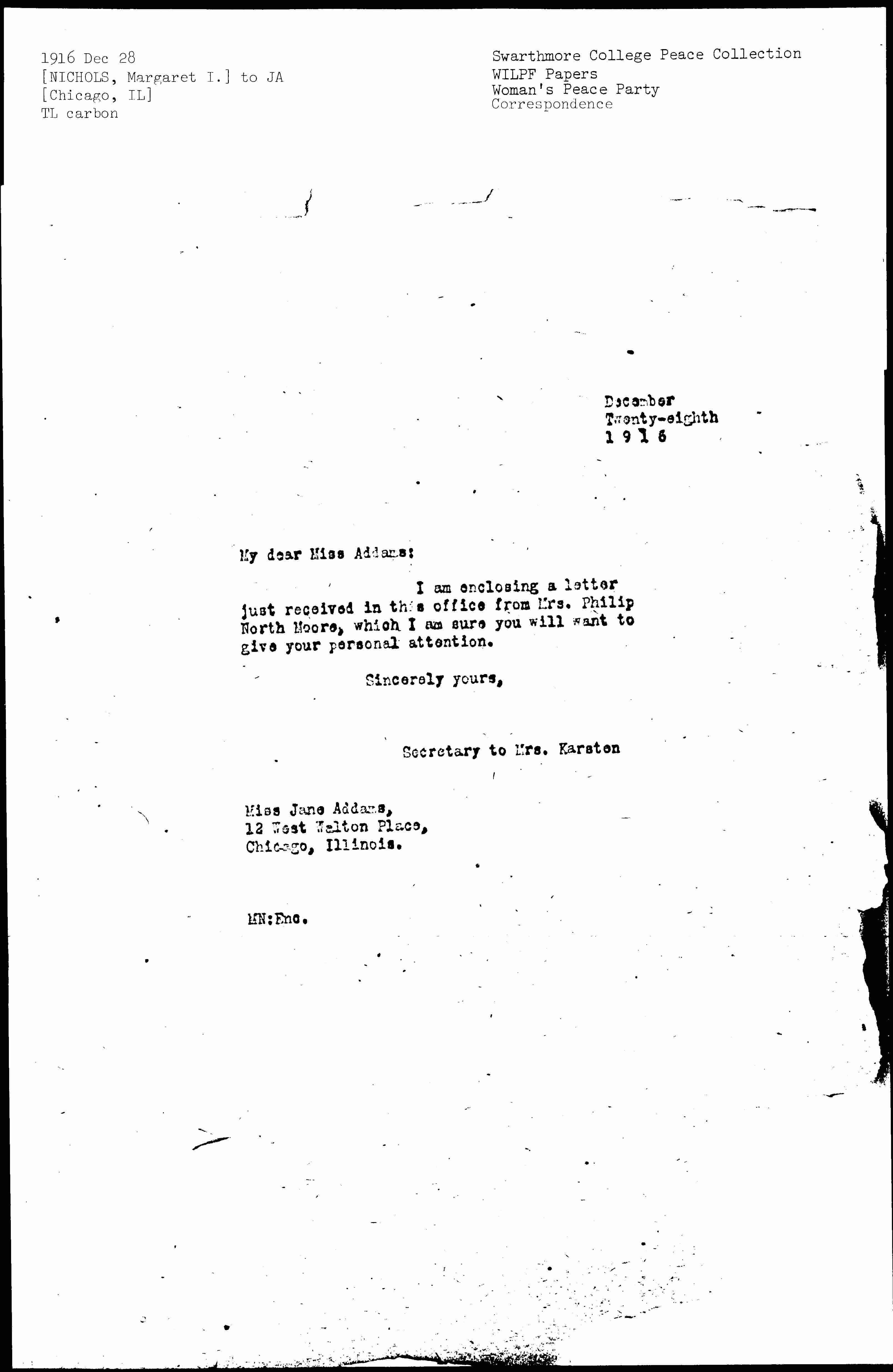 My dear Miss Addams: