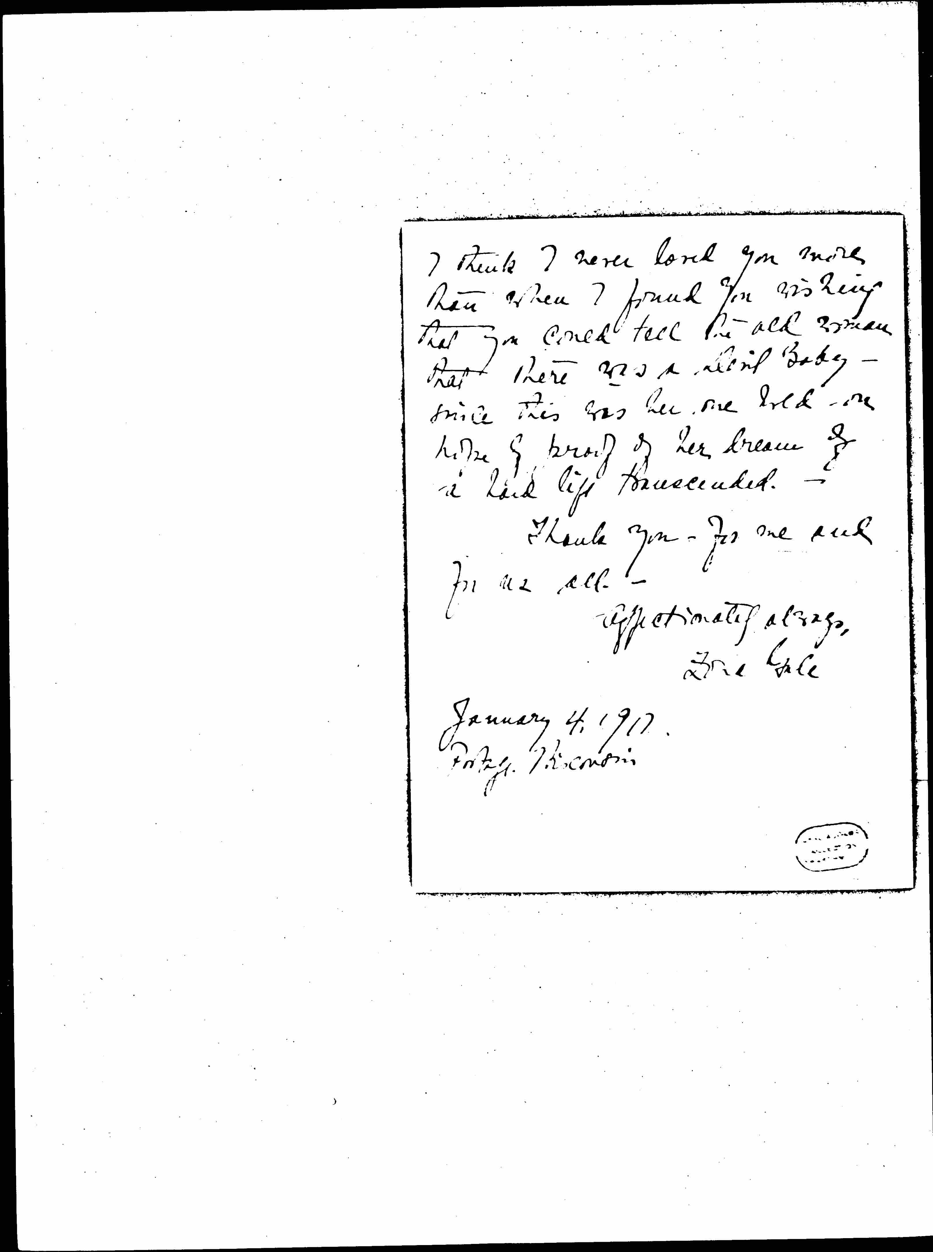 But your book, with its piercing incident, puts me in a new place. The Egyptian chapter touches into those other forms of our unity which they, someday, will come to know. But [page 4] I think I never loved you more than when I found you wishing that you could tell the old woman that there was a Devil Baby -- since this was her one hold on hope of proof of her dream of a hard life transcended. --