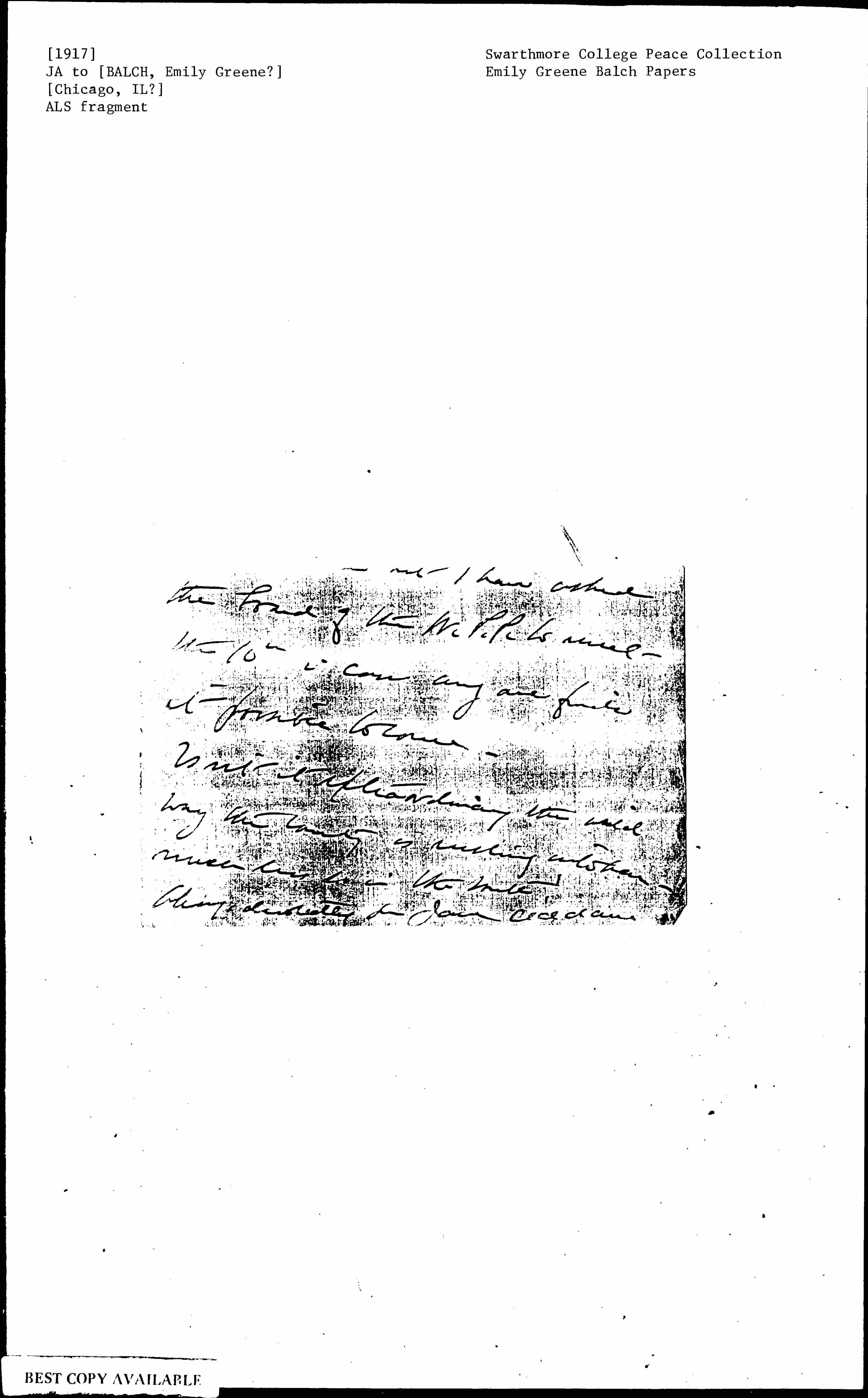 Always devotedly yrs Jane Addams