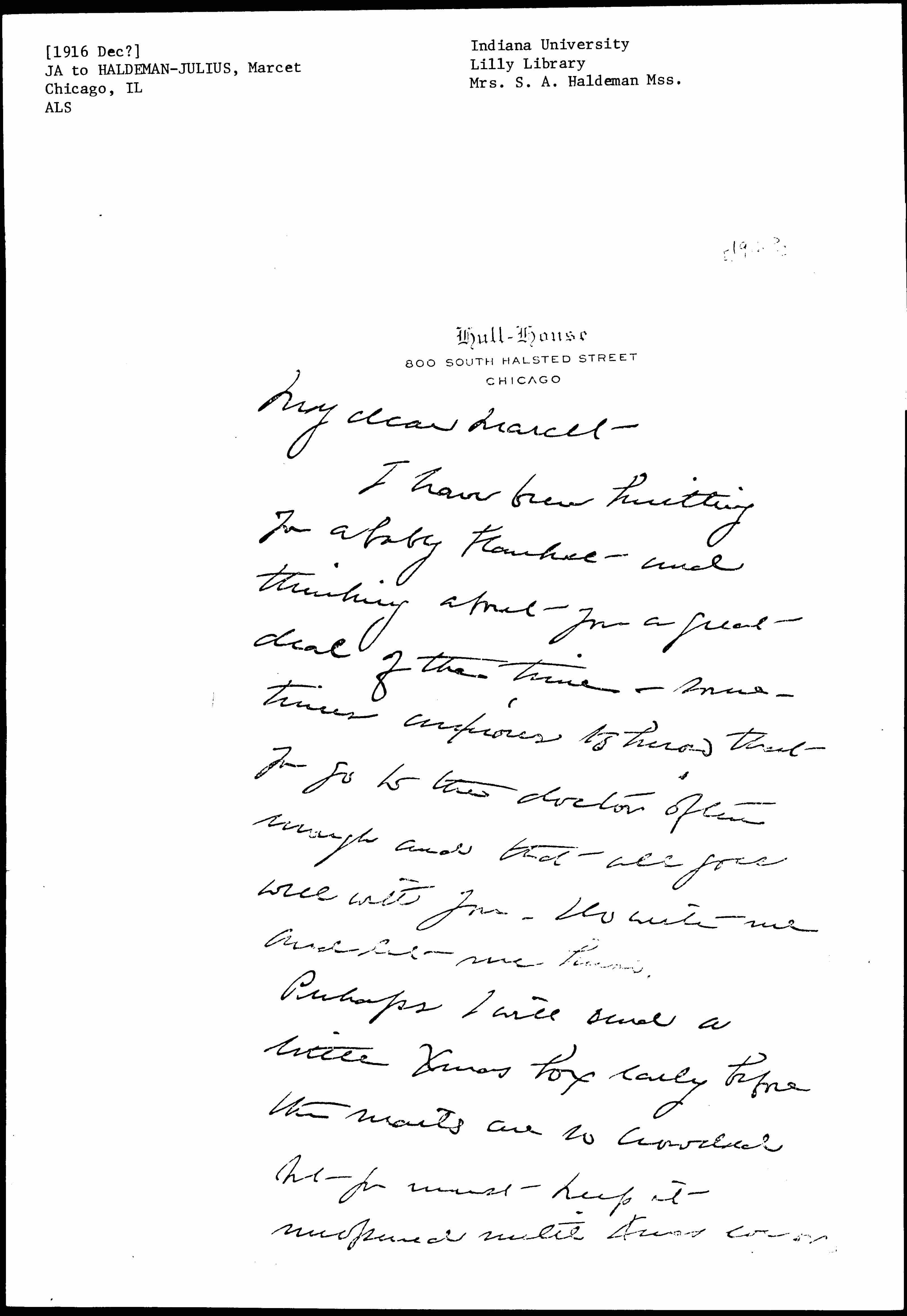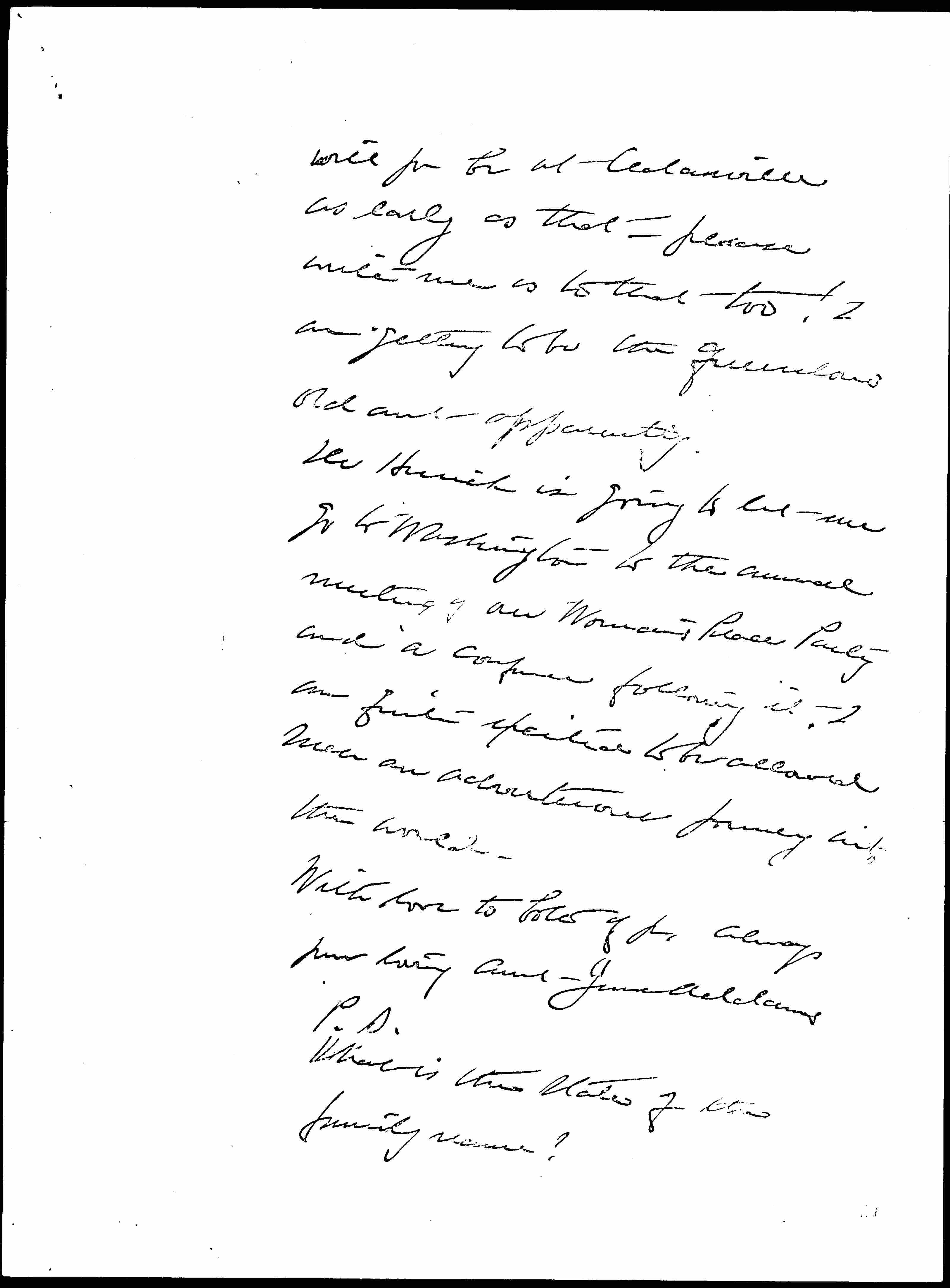Dr Herrick is going to let me go to Washington to the annual meeting of our Woman's Peace Party and a conference following it. I am quite excited to be allowed such an adventurous journey into the world.