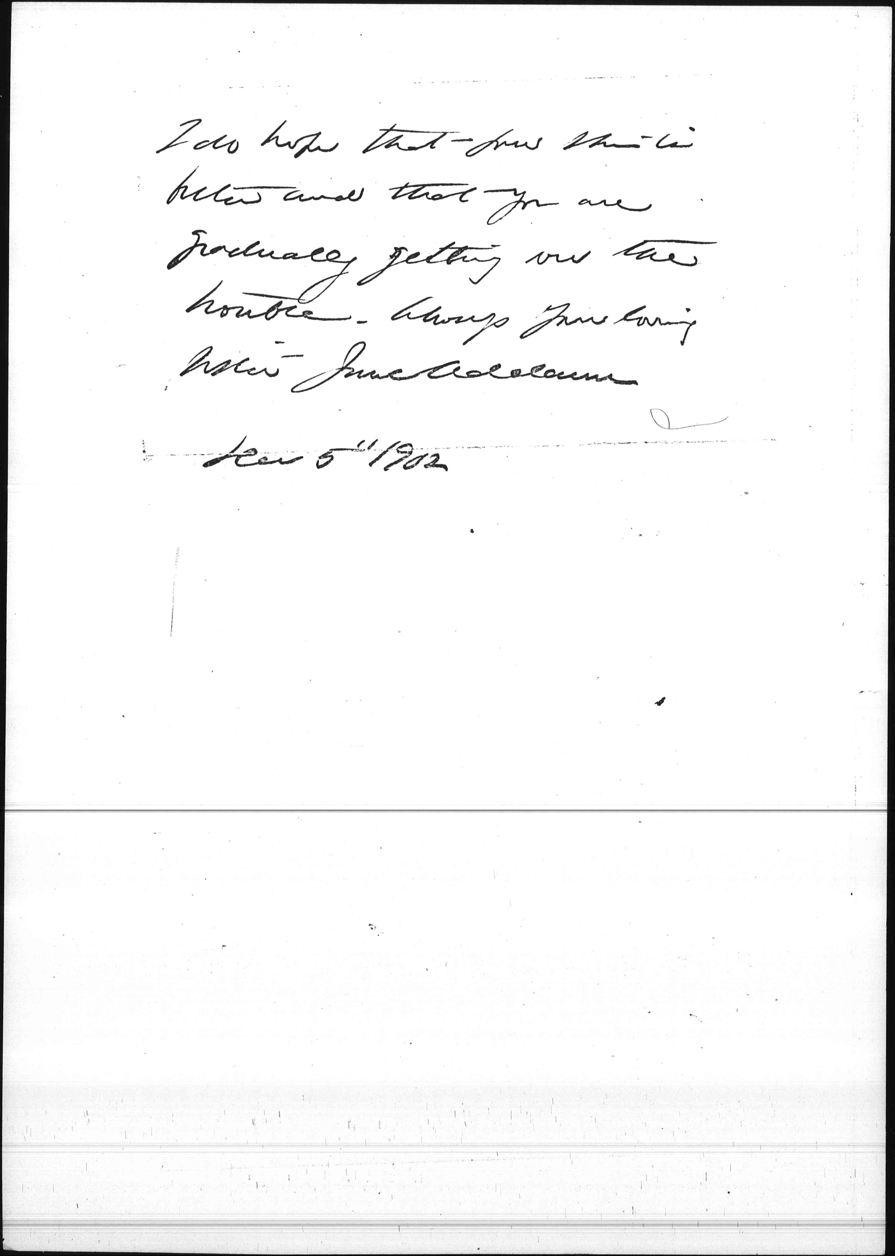 We all enjoyed Marcet's visit very much and it was charming to have her come. I hope that we are going to have many more such visits during the two years. I was sorry to go away before she did but the Washington engagement was iron clad. I was the guest of Miss [Abby] Ware who was most kind to me, and I was also invited to lunch at the White House which was a very jolly and interesting experience. [page 2]
