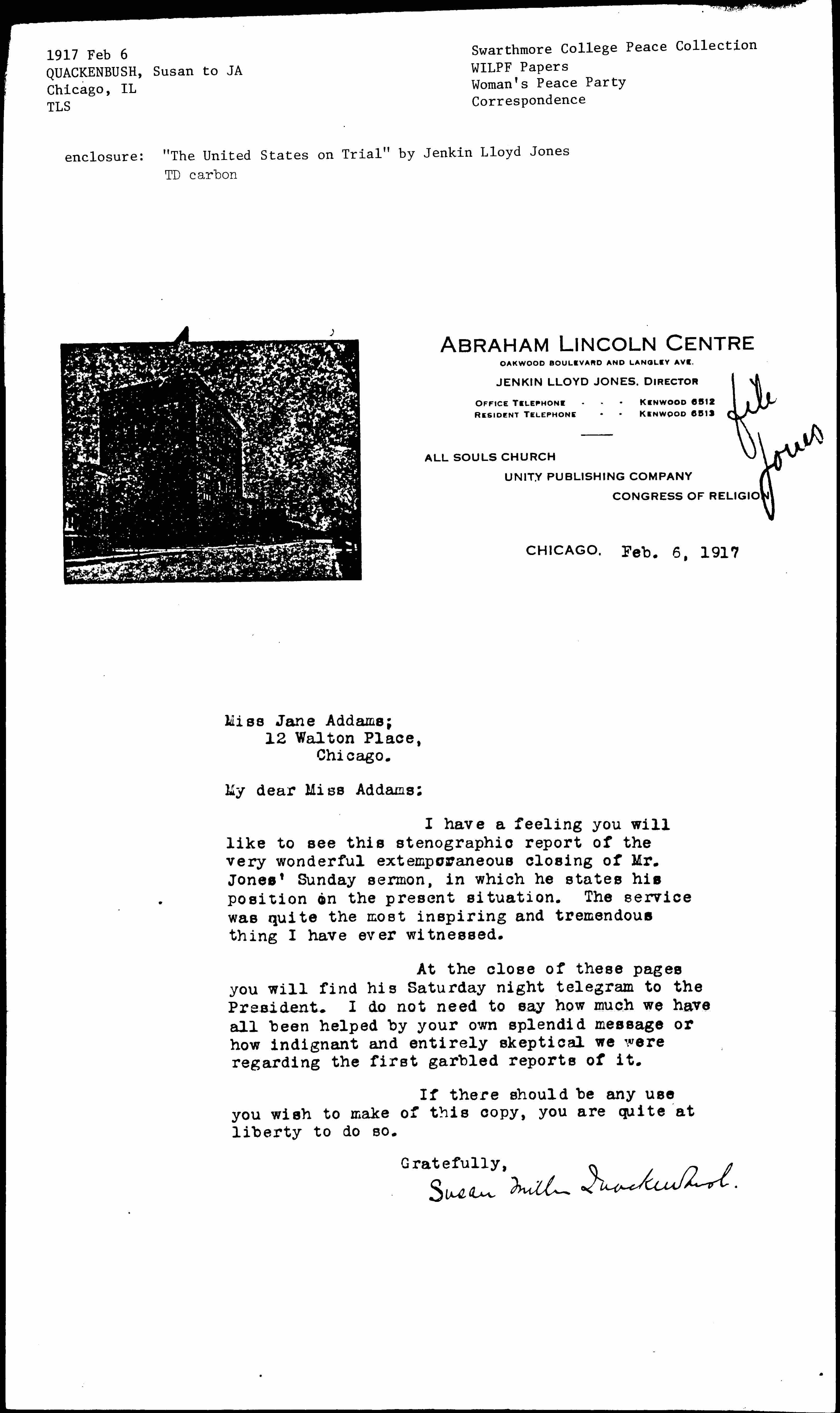 I have a feeling you will like to see this stenographic report of the very wonderful extemporaneous closing of Mr. Jones' Sunday sermon, in which he states his position on the present situation. The service was quite the most inspiring and tremendous thing I have ever witnessed.