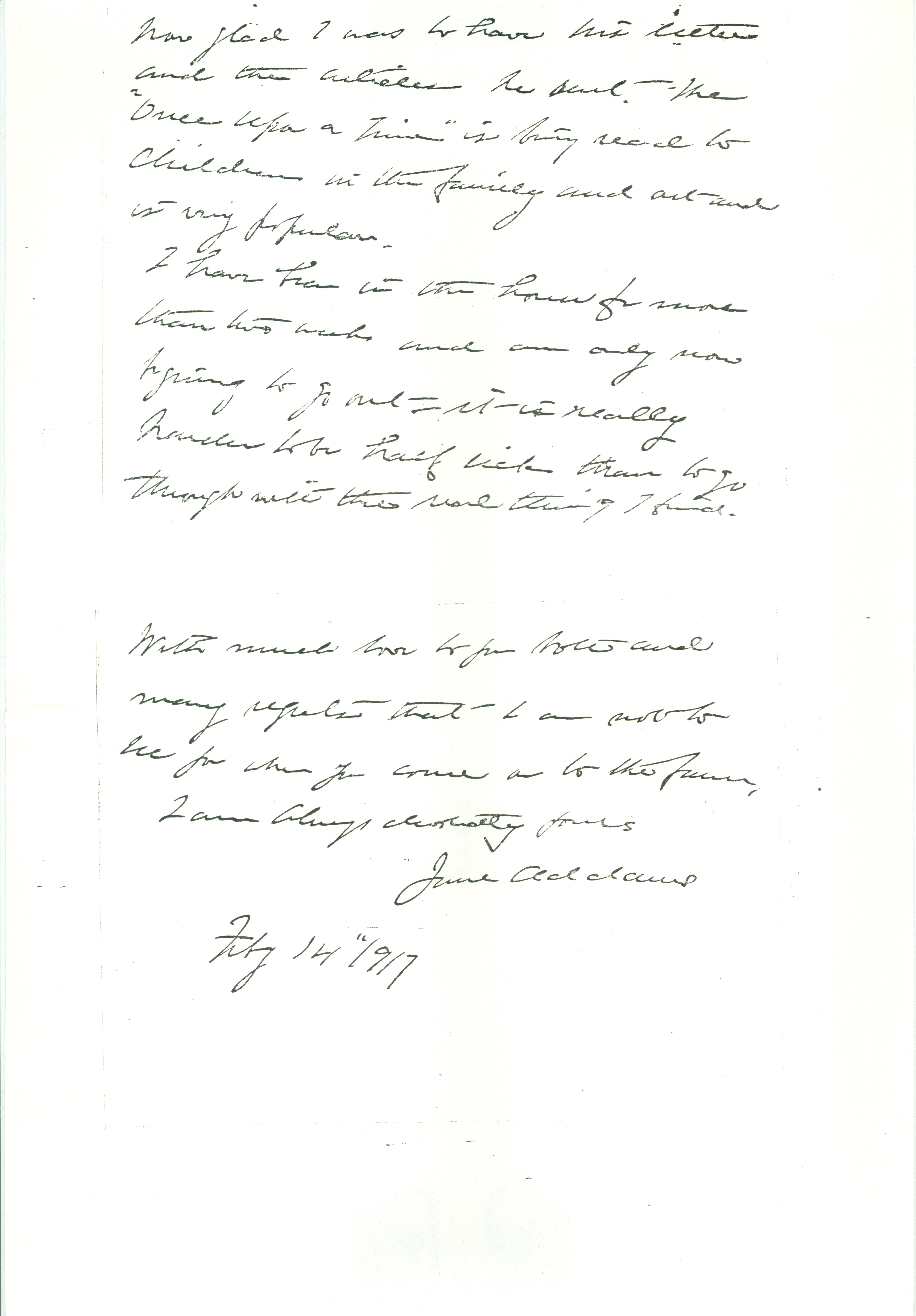 With much love to you both and many regrets that I am not to see you when you come on to the farm,