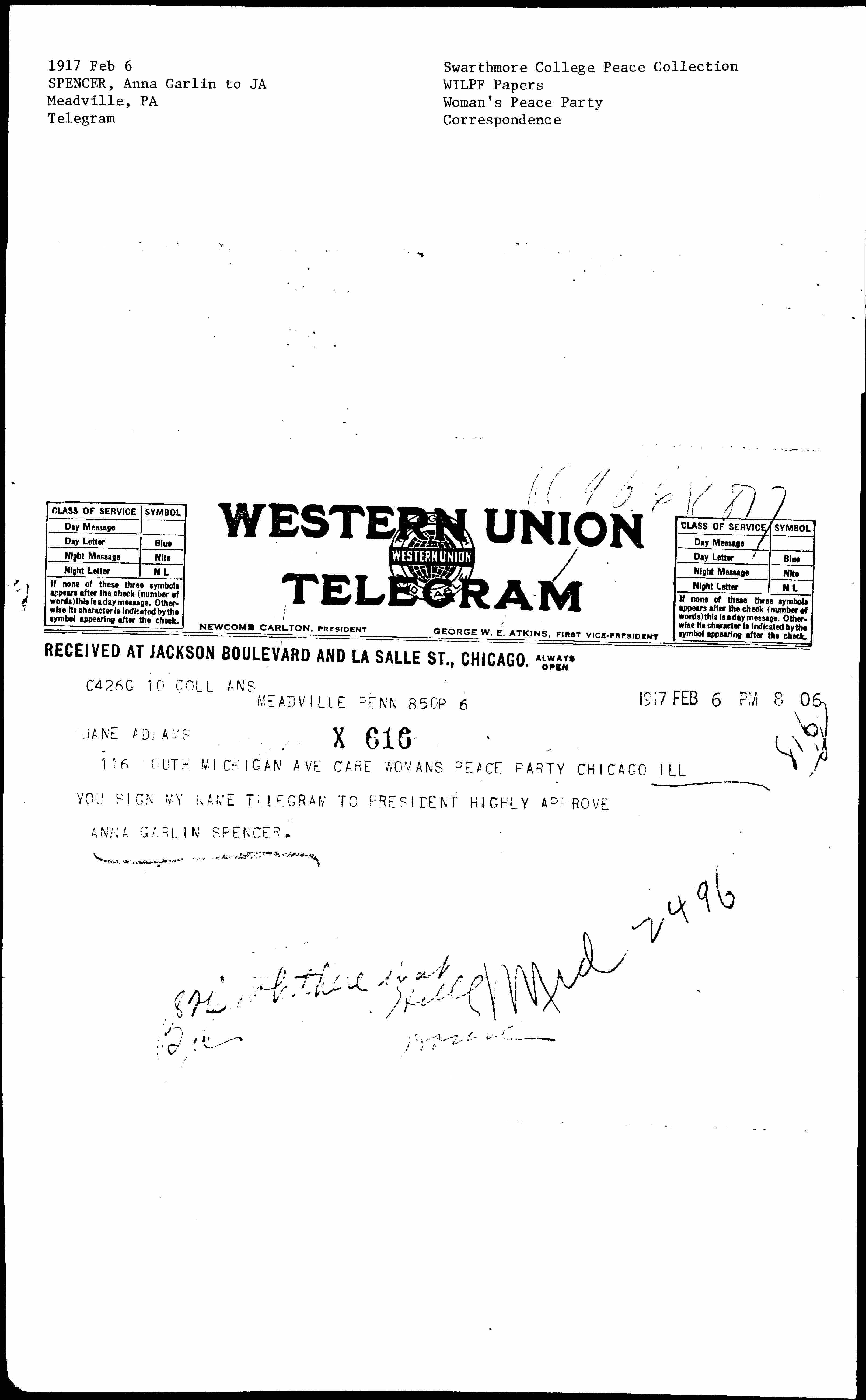 116 SOUTH MICHIGAN AVE CARE WOMANS PEACE PARTY CHICAGO ILL