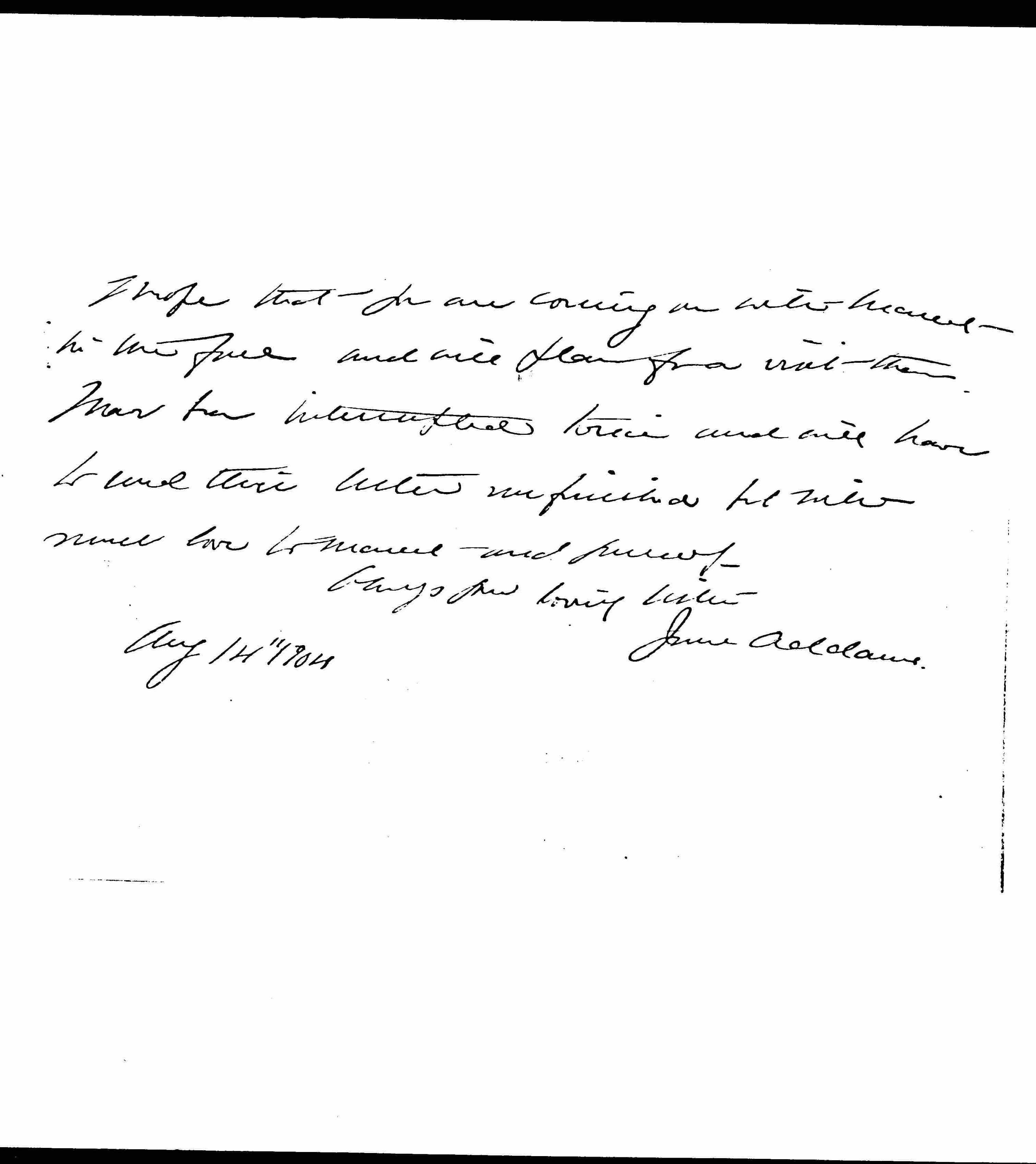 I hope that you are coming on with Marcet in the fall and will plan for a visit then. I have been interrupted twice and will have to send this letter unfinished but with much love to Marcet and yourself.