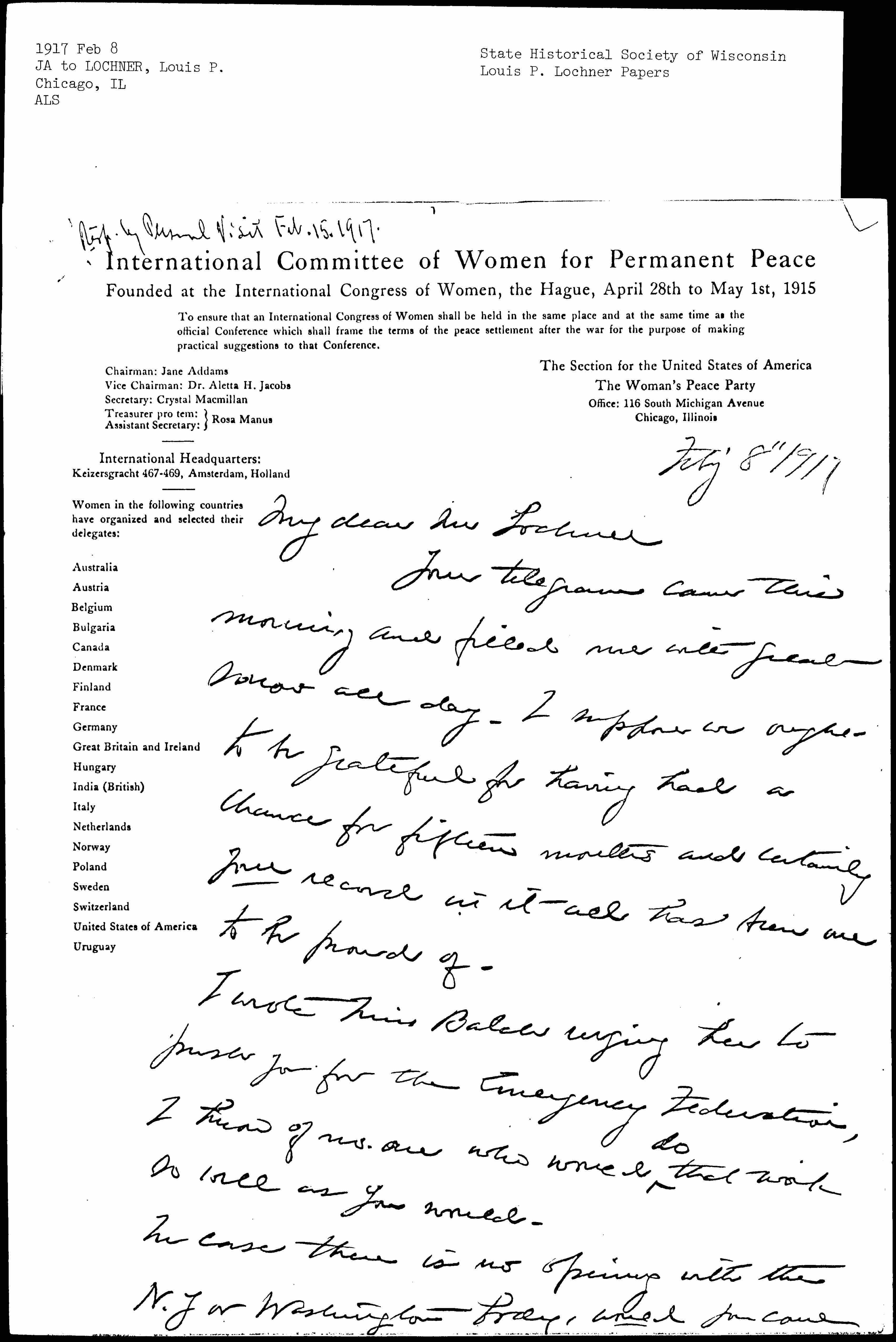 I wrote Miss Balch urging her to push you for the Emergency Federation, I know of no one who would <do> that work so well as you would.