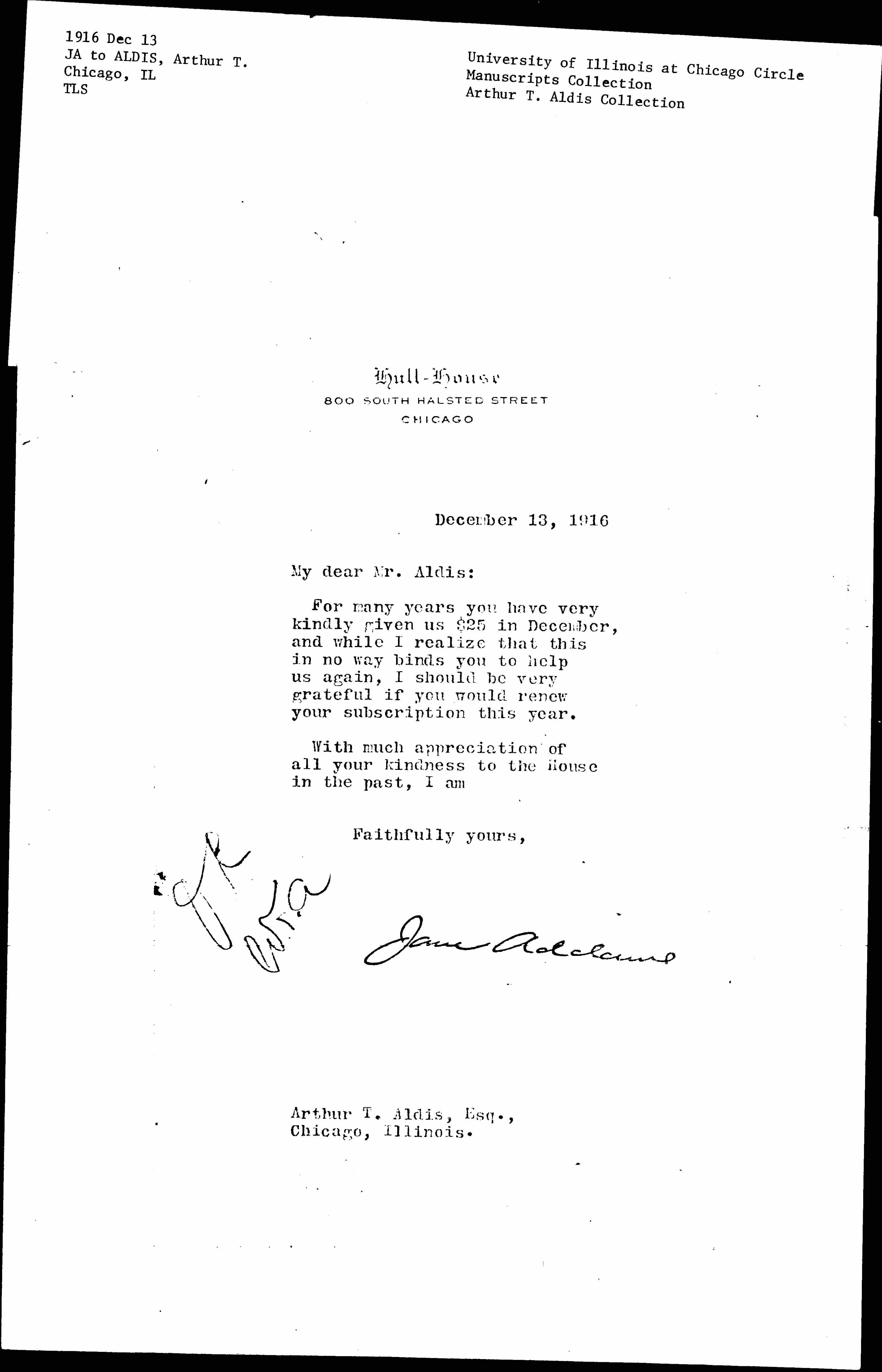 Jane Addams [signed]