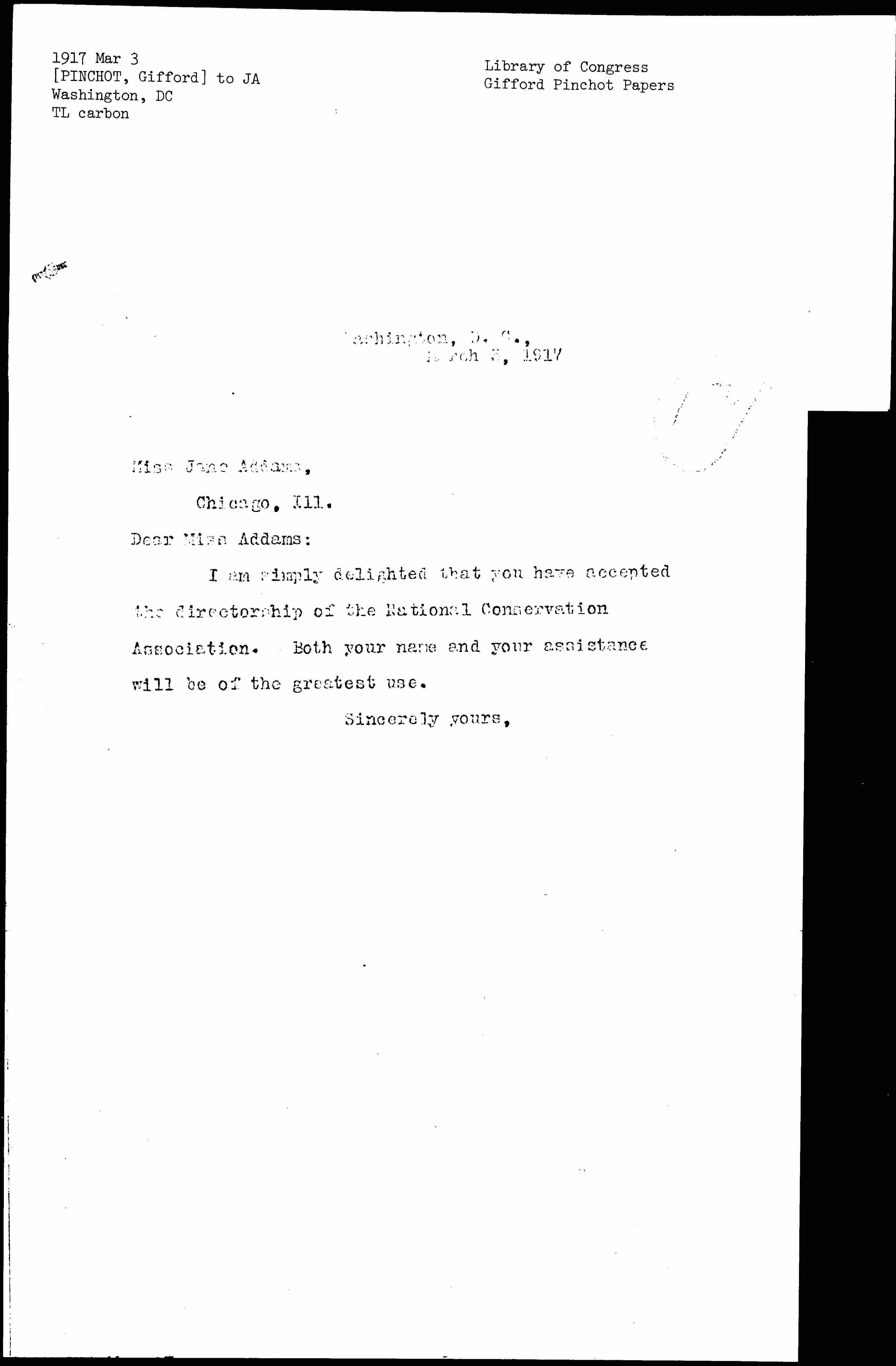 I am simply delighted that you have accepted the directorship of the National Conservation Association. Both your name and your assistance will be of the greatest use.