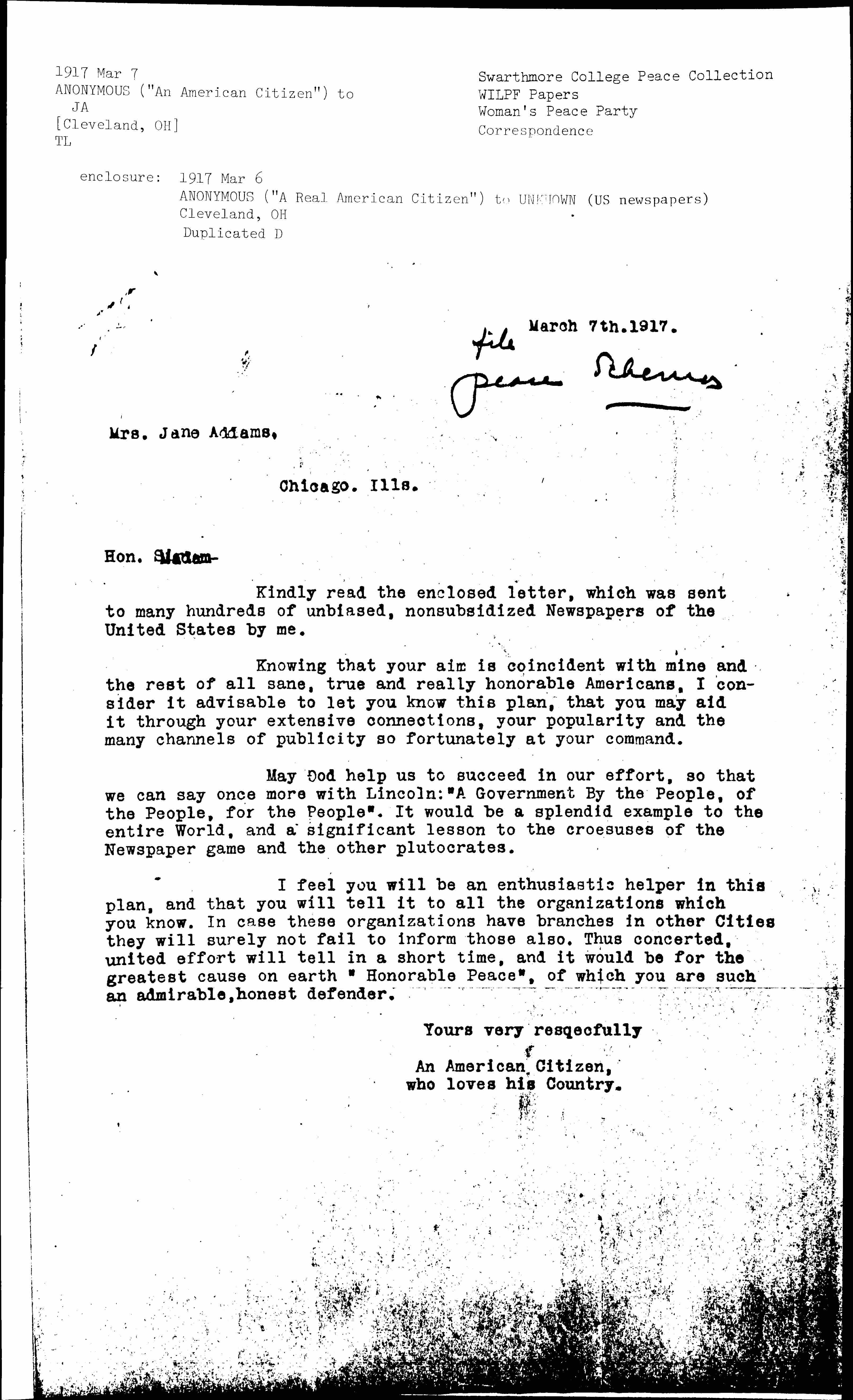 Kindly read the enclosed letter, which was sent to many hundreds of unbiased, nonsubsidized Newspapers of the United States by me.