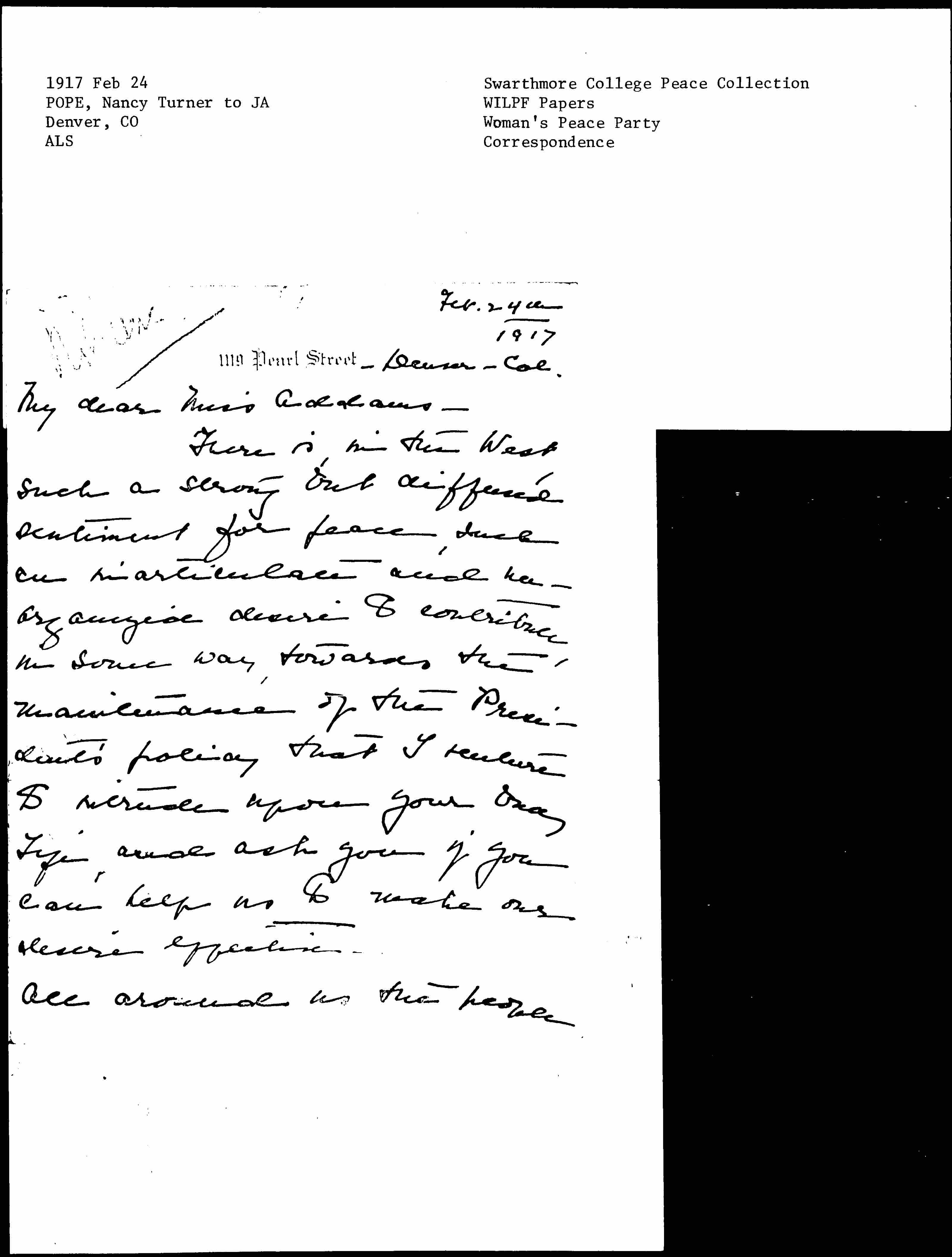 There is, in the West, such a strong but diffused sentiment for peace, such an inarticulate and unorganized desire to contribute, in some way, towards the maintenance of the President's policy that I venture to intrude upon your [busy] Life, and ask you if you can help us to make our desire effective.