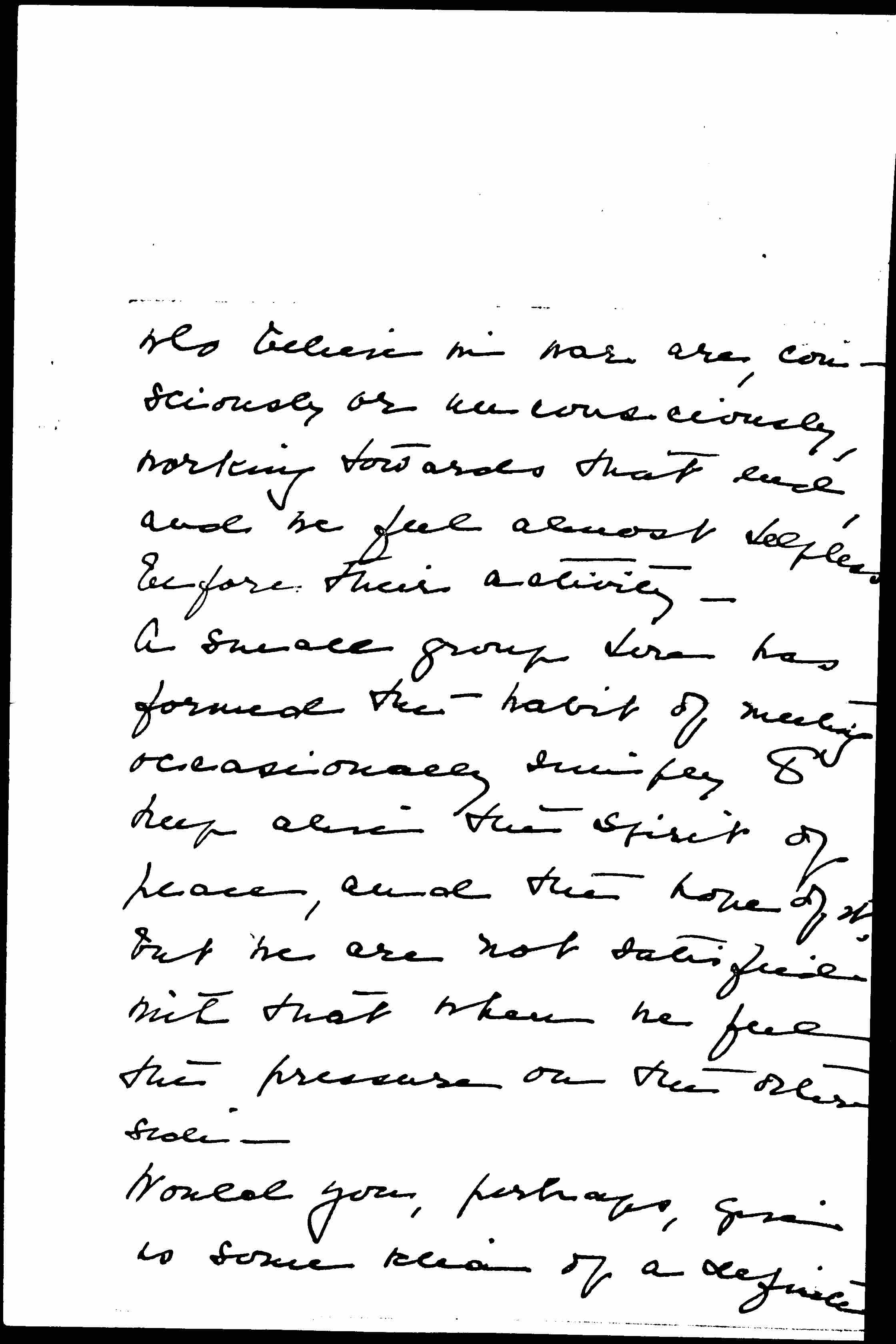 A small group here has formed the habit of meeting occasionally simply to keep alive the spirit of peace, and the hope of it, but we are not satisfied with that when we feel the pressure on the other side.