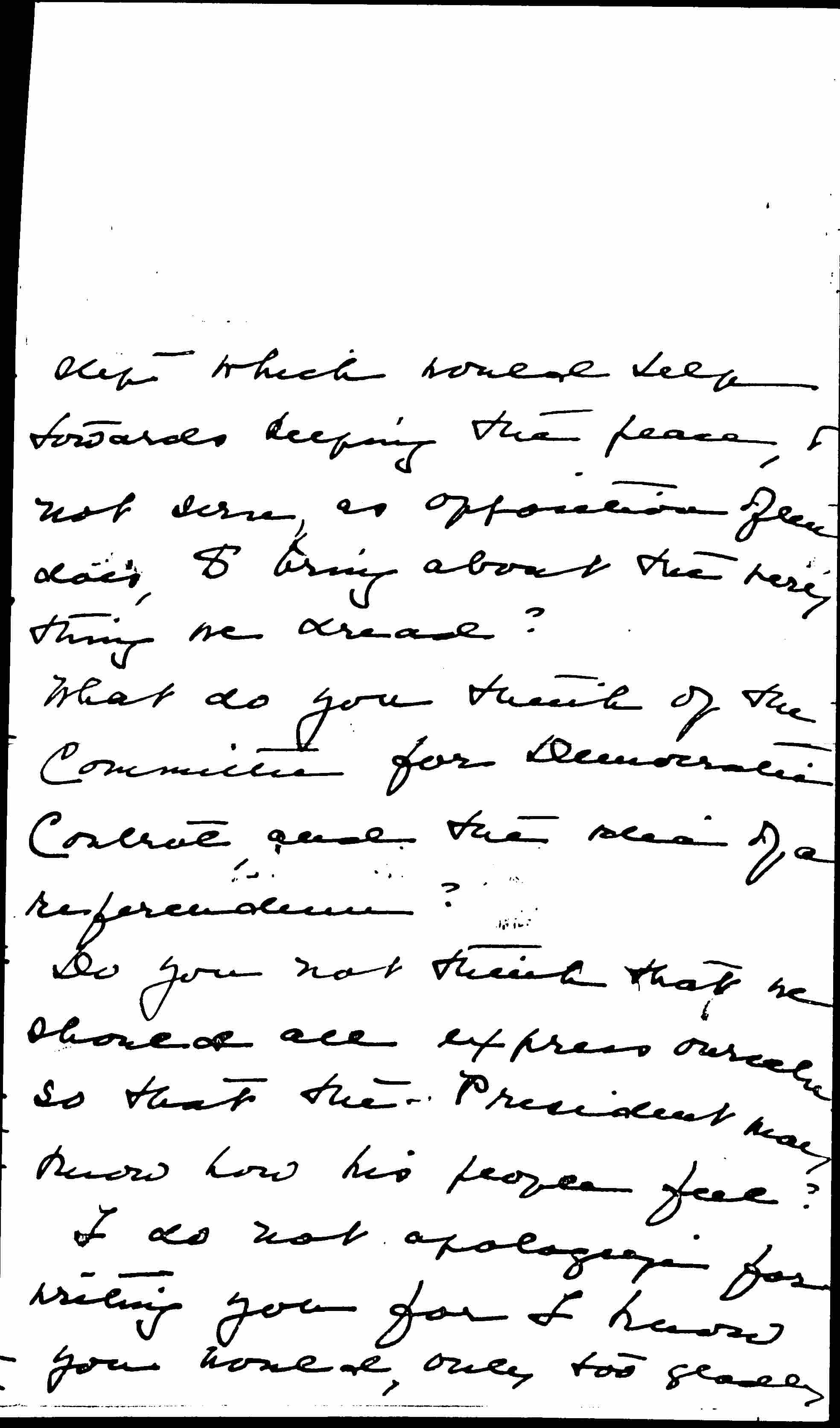 Would you, perhaps, give us some idea of a definite [page 3] step which would help towards keeping the peace, [if] not serve, as opposition often does, to bring about the very thing we dread?