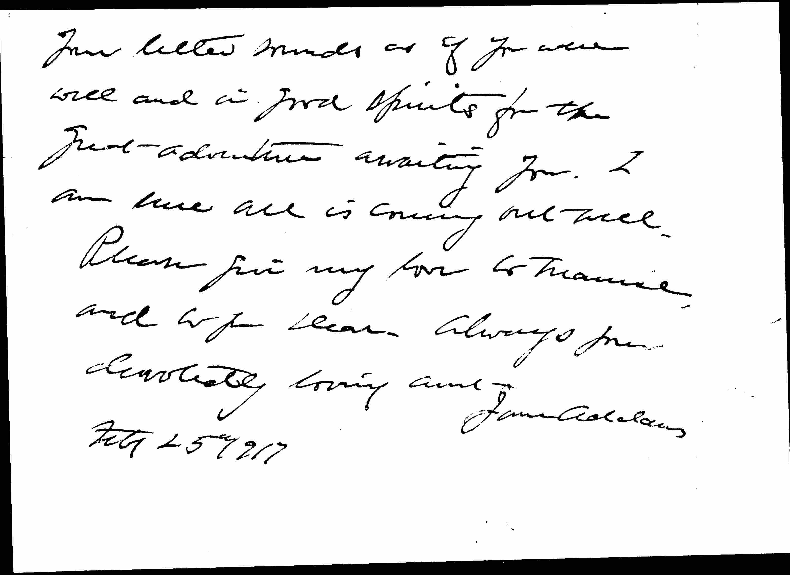 Your letter sounds as if you were well and in good spirits for the great adventure awaiting you. I am sure all is coming out well.