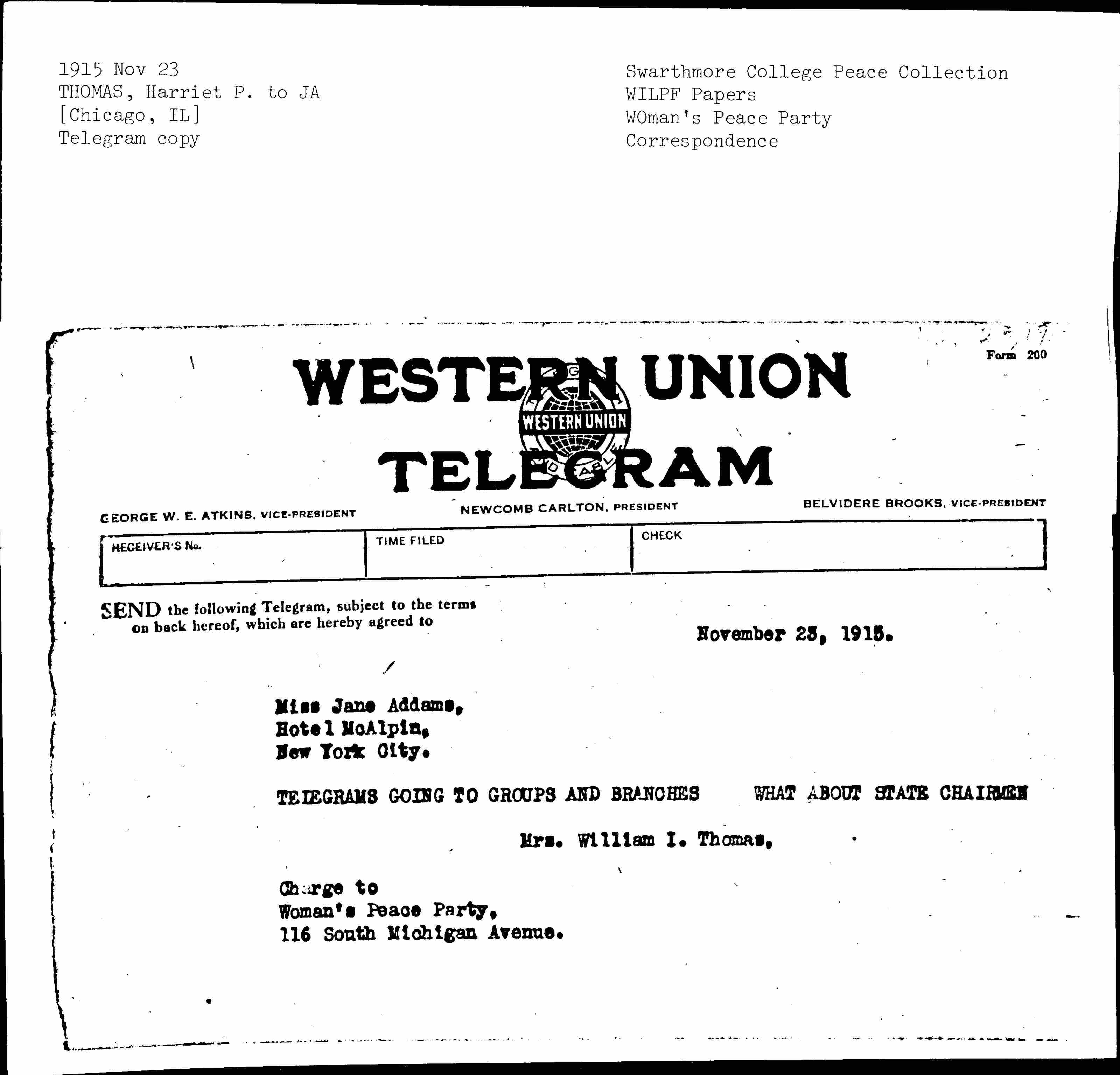 TELEGRAMS GOING TO GROUPS AND BRANCHES WHAT ABOUT STATE CHAIRMEN