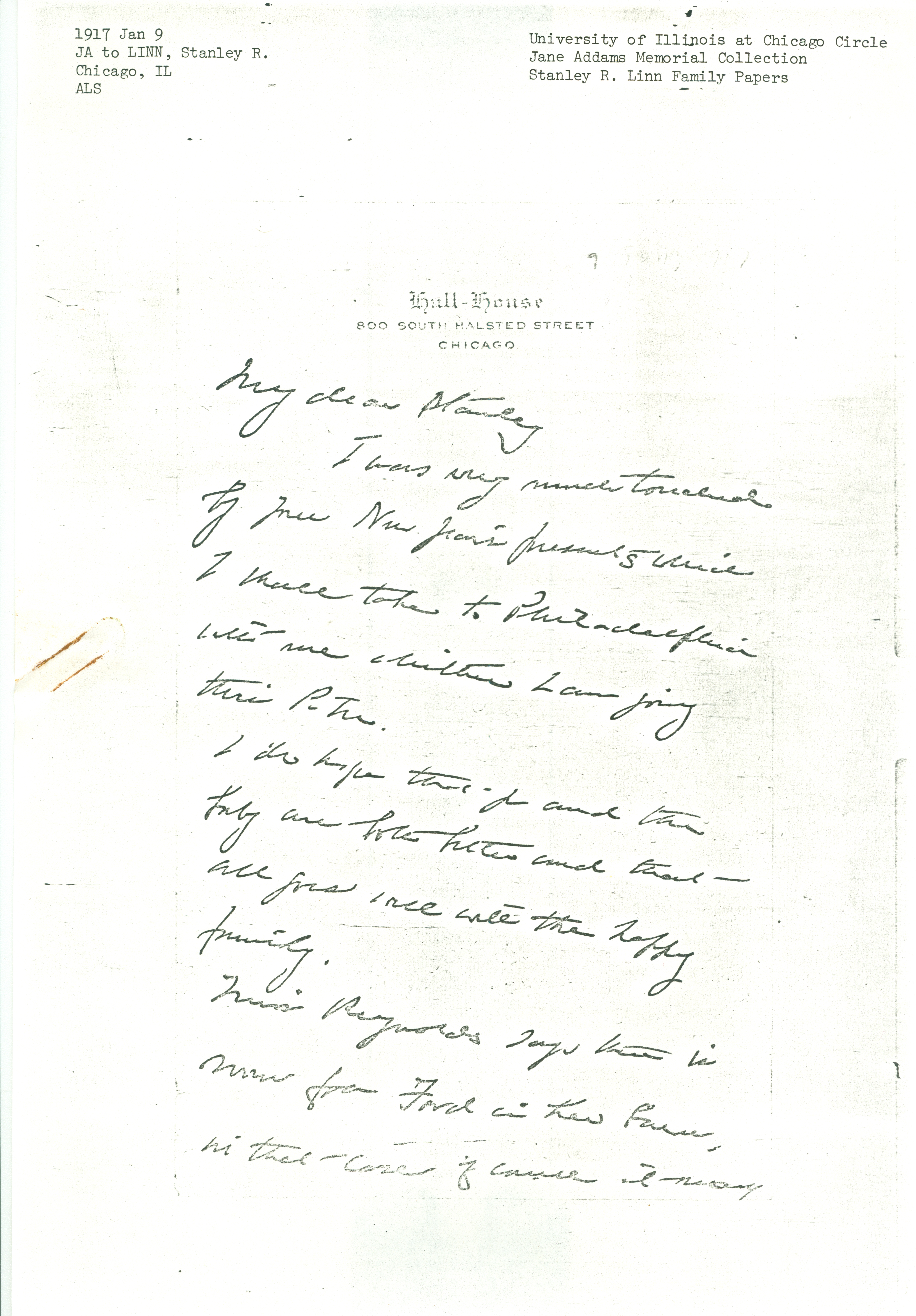 I was very much touched by your New Year's presents which I shall take to Philadelphia with me whither I am going this P.M.