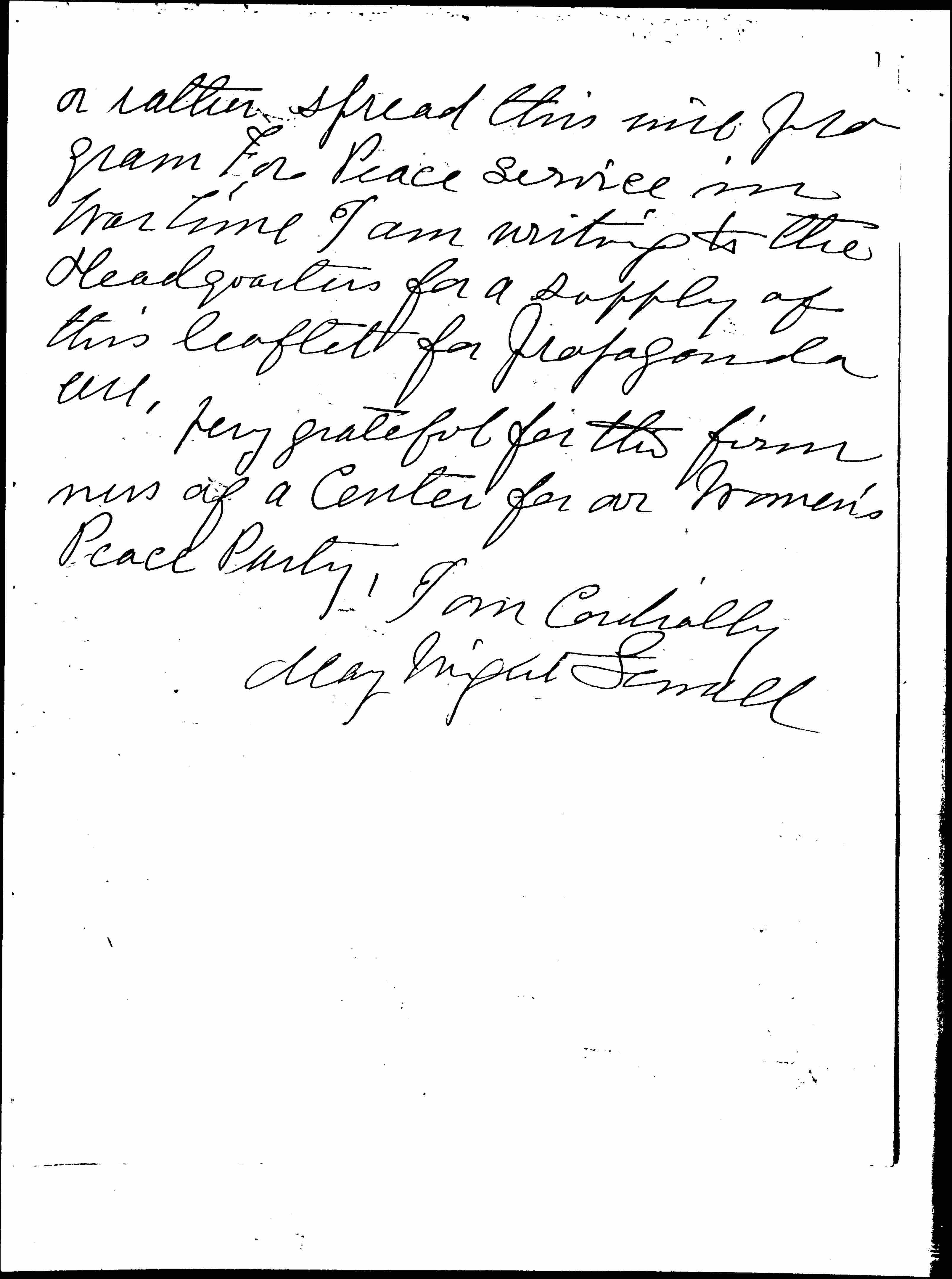 That I may scatter [page 2] or rather spread this nice program for Peace service in wartime I am writing to the Headquarters for a supply of this leaflet for propaganda use.