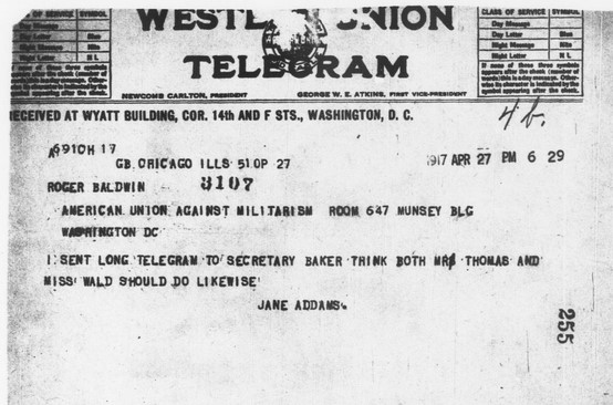 I SENT LONG TELEGRAM TO SECRETARY BAKER THINK BOTH MR THOMAS AND MISS WALD SHOULD DO LIKEWISE