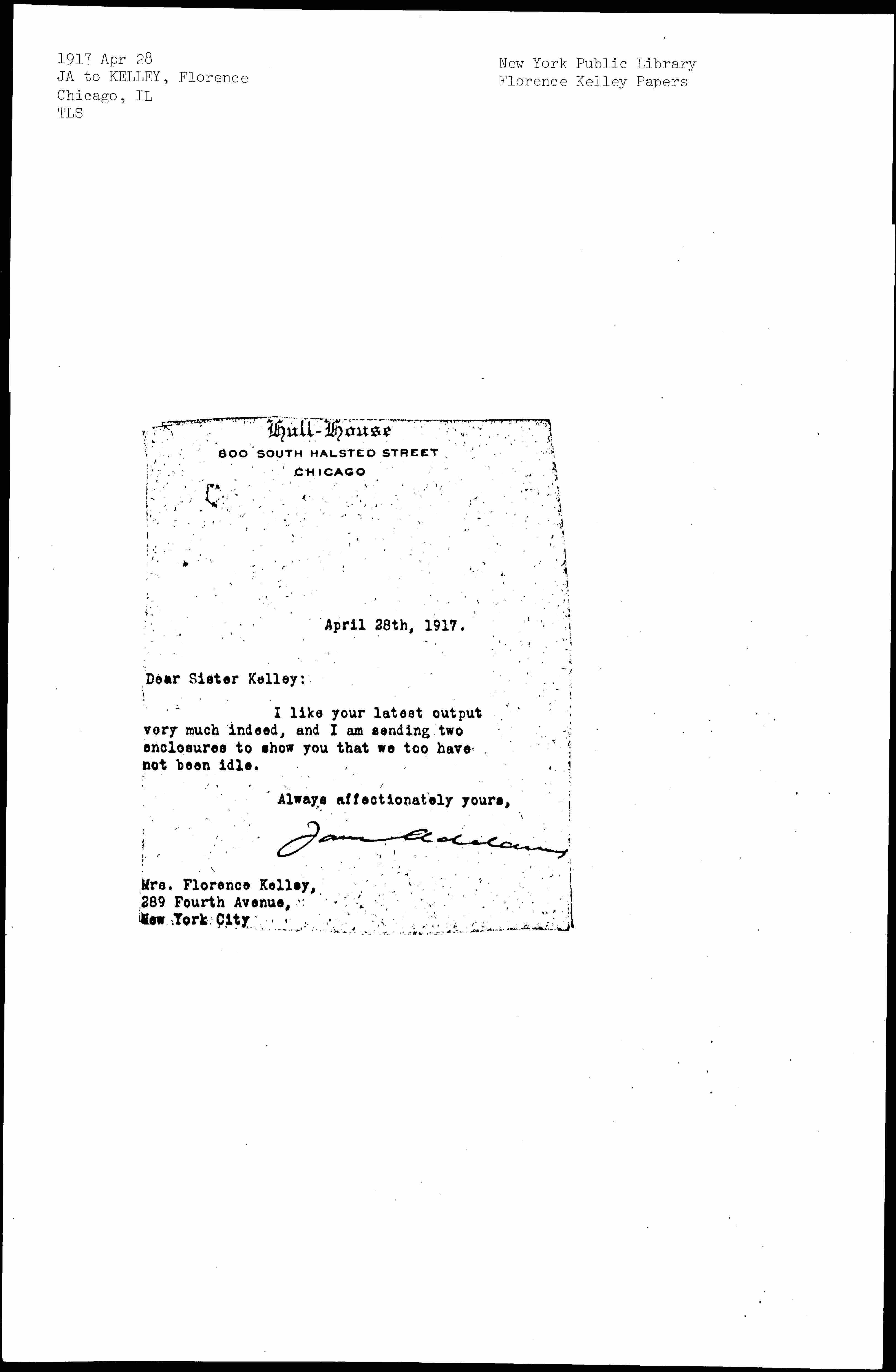 Jane Addams [signed]