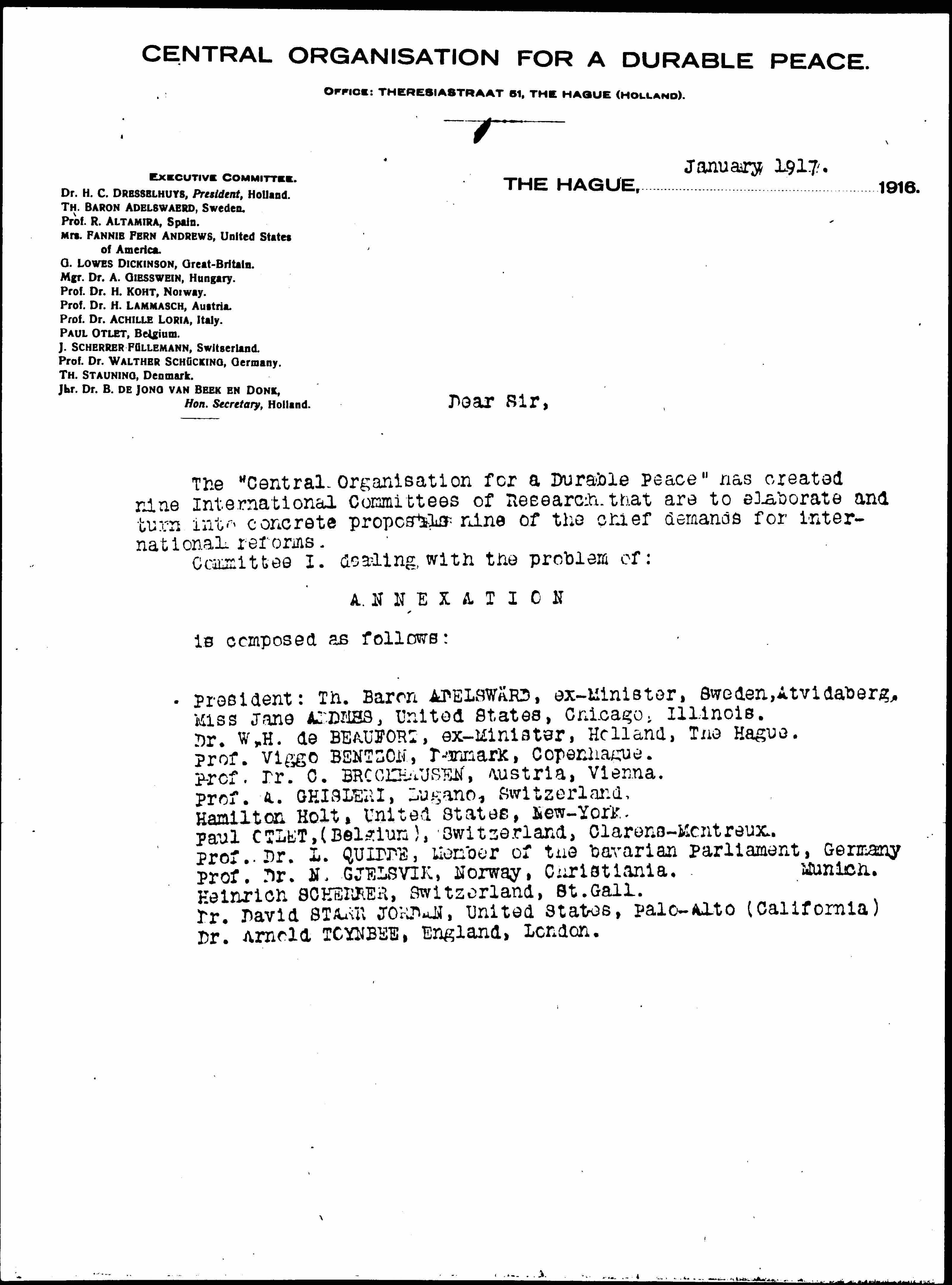 THE HAGUE, January 1917.