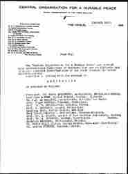 In order to give you some idea of the principles of the Central [Organization], which exclusively deals with international policy AFTER THE WAR, AND TRIES IN NO WAY TO CALL FORTH THE IMMEDIATE END OF THE PRESENT HOSTILITIES, we are sending you a copy of our MANIFESTO.