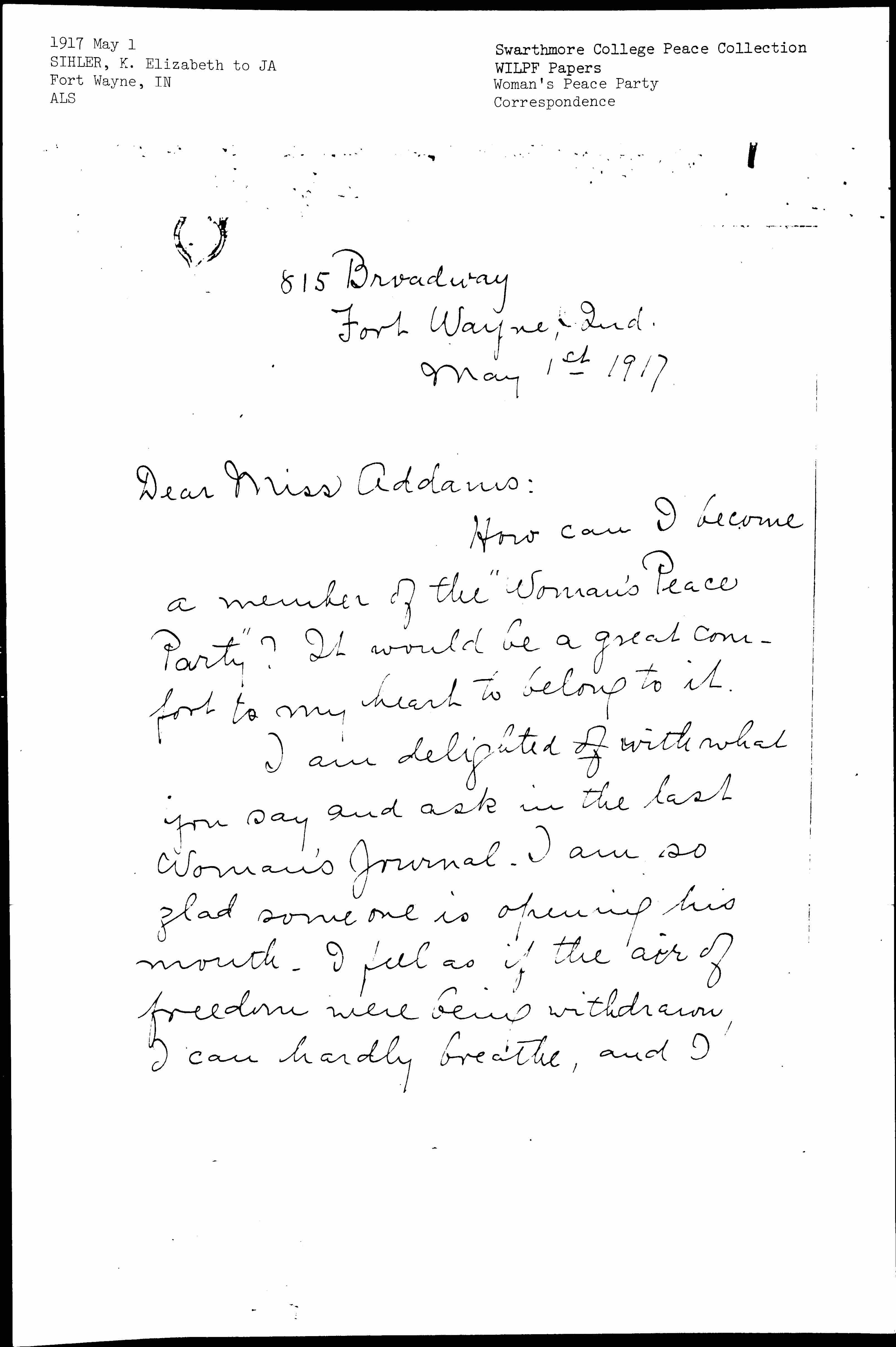 How can I become a member of the "Woman's Peace Party"? It would be a great comfort to my heart to belong to it.